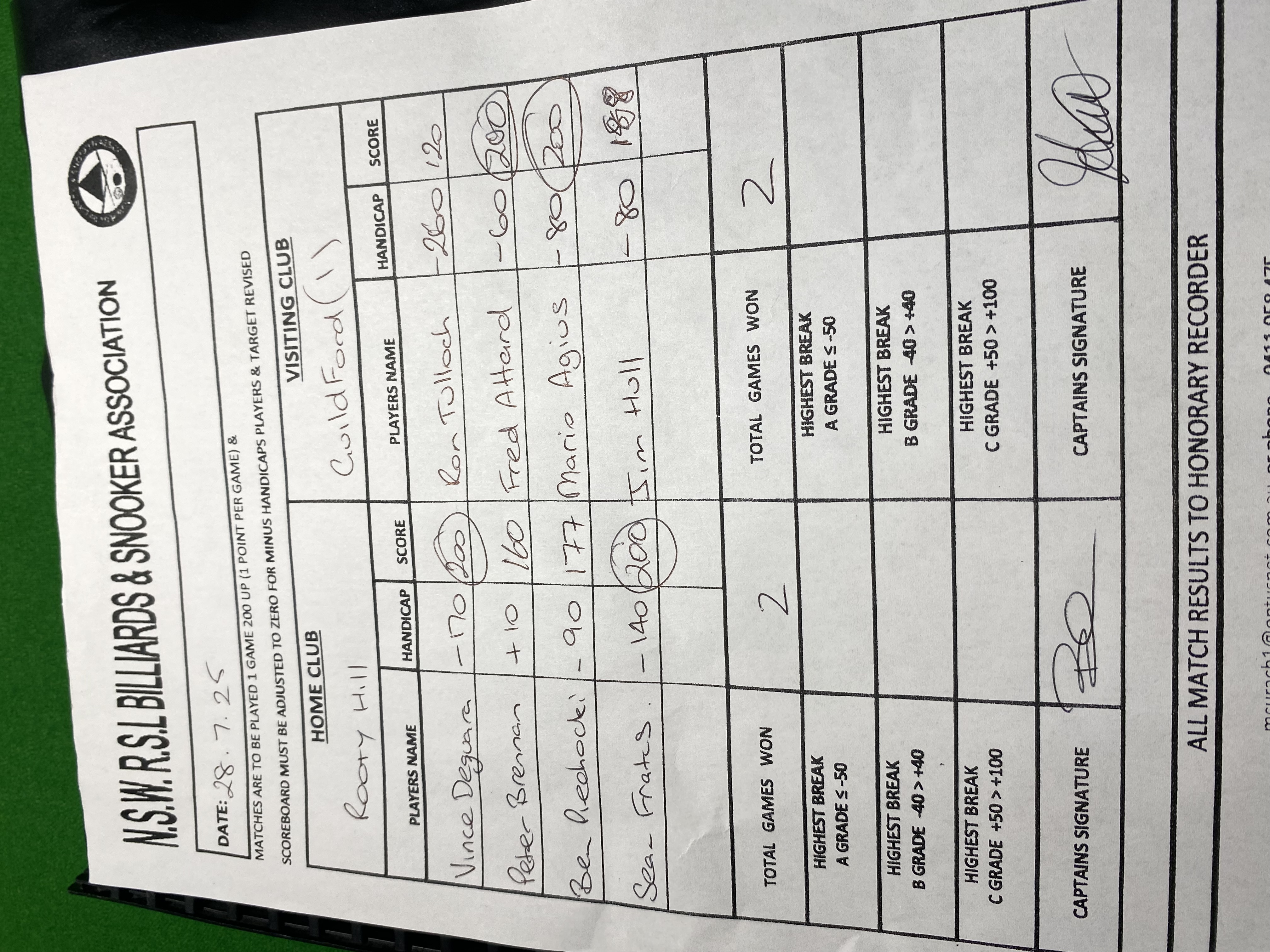 | Peter Brennan (10) | Fred Attard (-60) | 2025-07-28 22:01:12 | Div1 - Rooty Hill | ||||||||