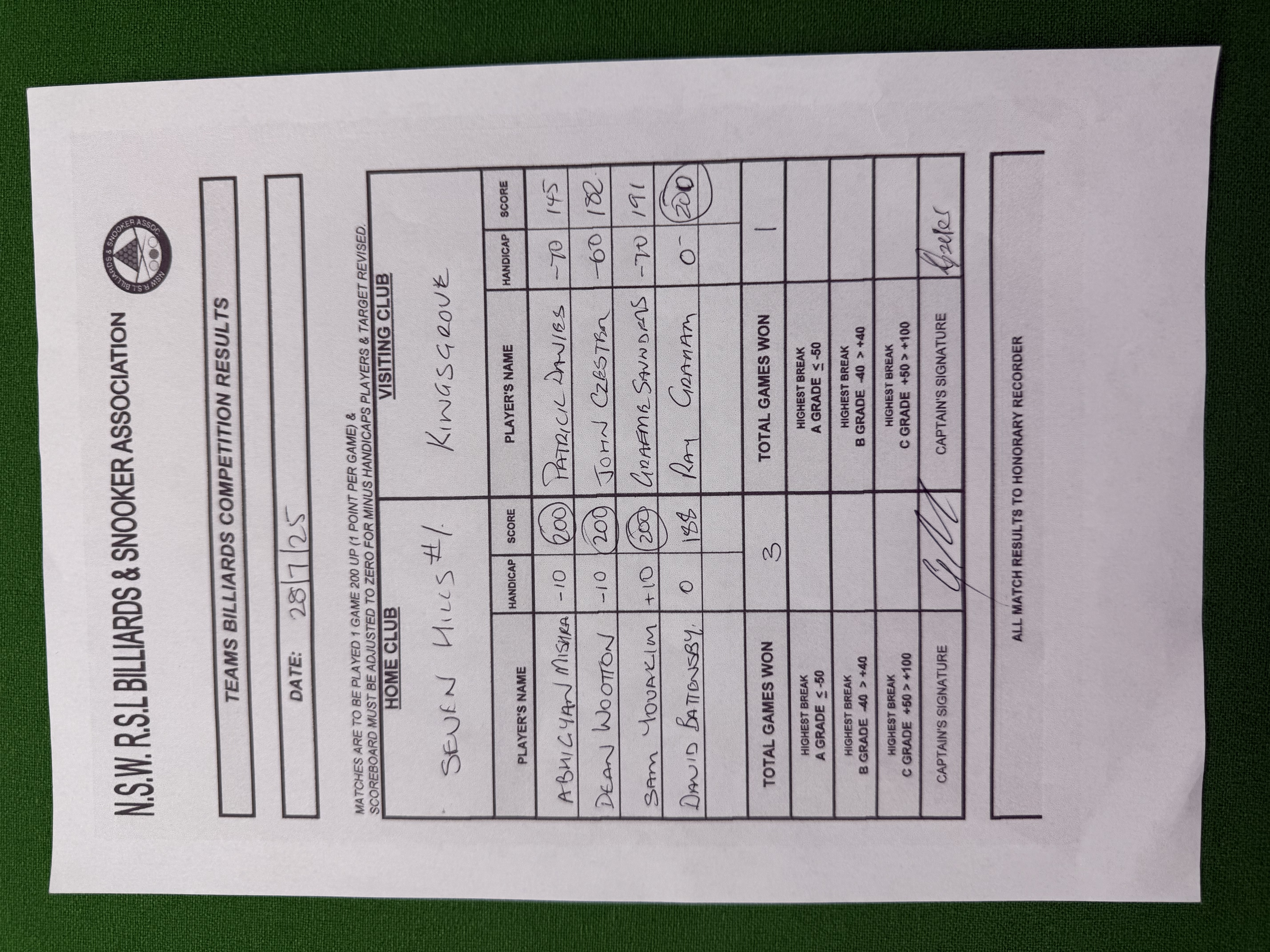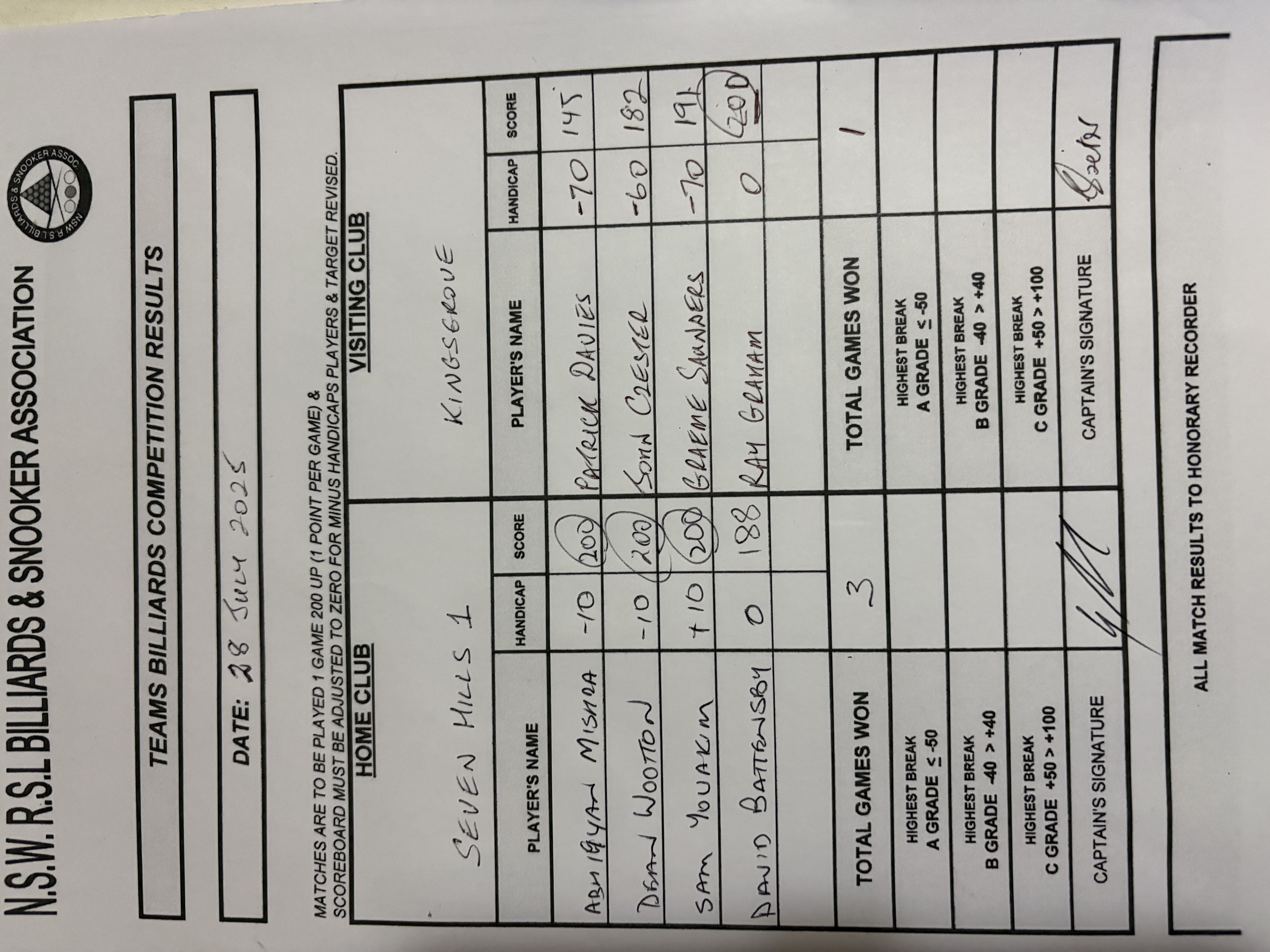 | David Battensby (0) | Raymond Graham (0) | 2025-07-28 23:15:15 | Div1 - Kingsgrove |