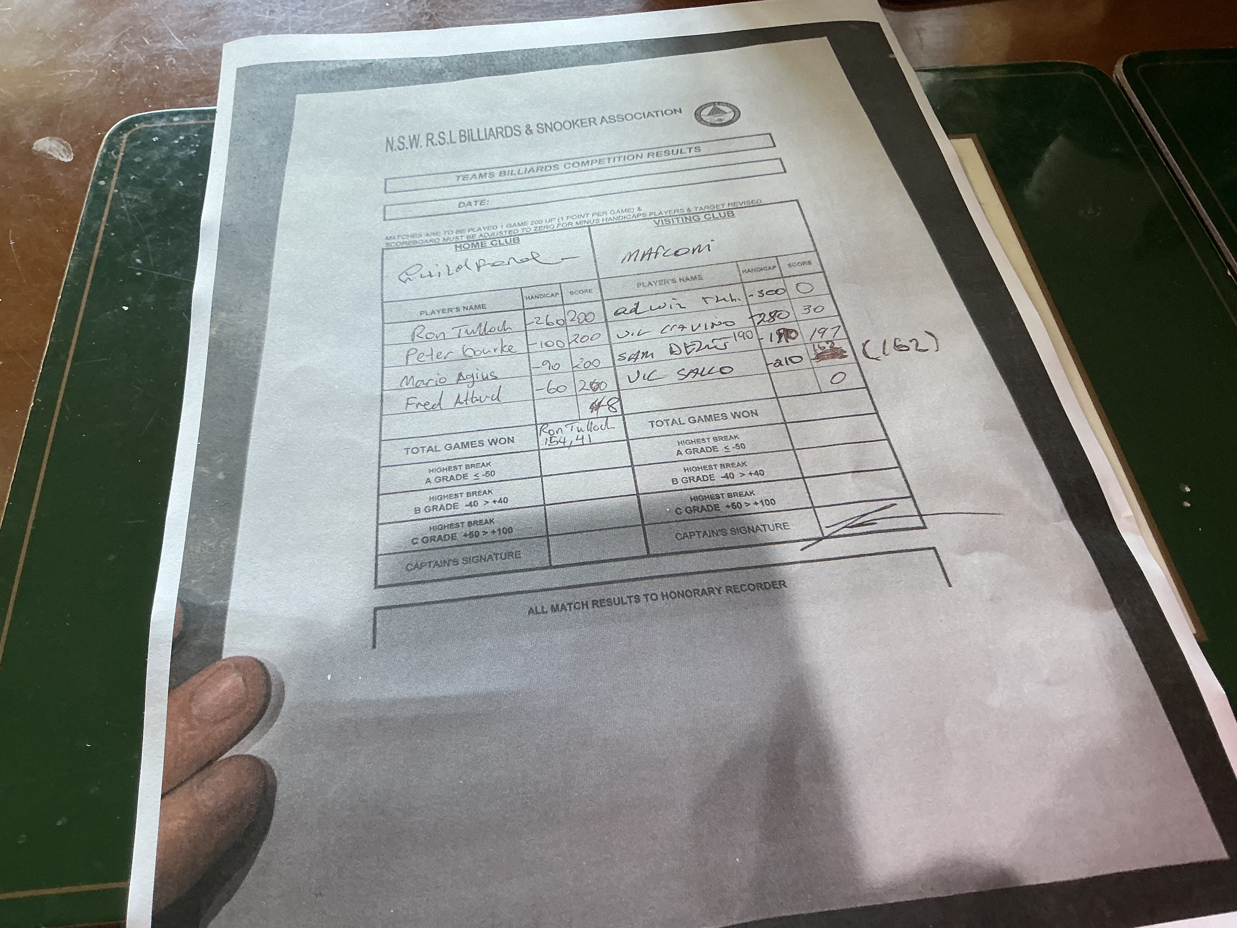 | POS | Guildford #1 | Score | PTS | Break | Marconi | Score | PTS | Breaks | Result Note | Updated on | Update by |