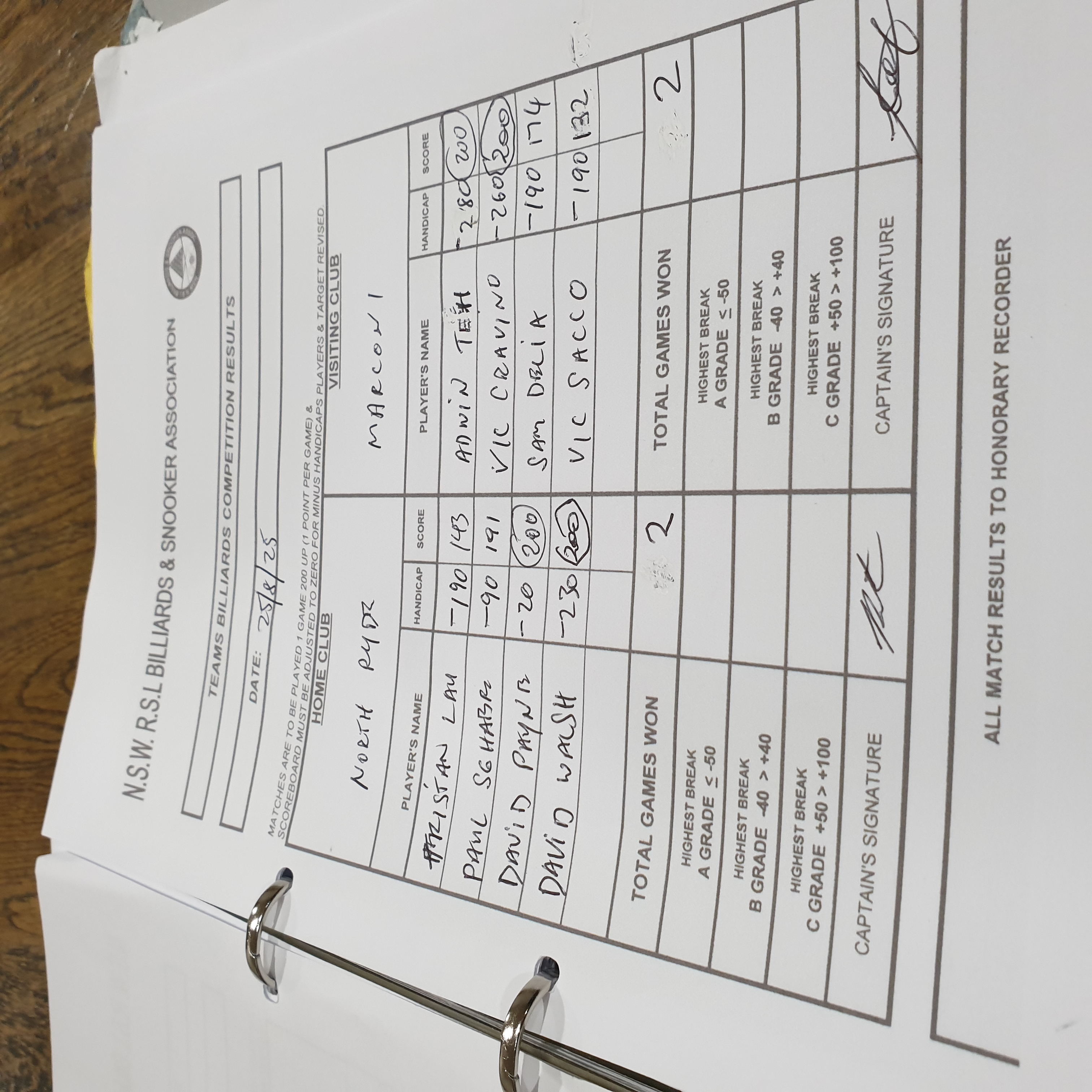 | David Payne (-20) | Sam Delia (-190) | 2025-08-25 23:19:19 | Div1 - North Ryde | ||||||||