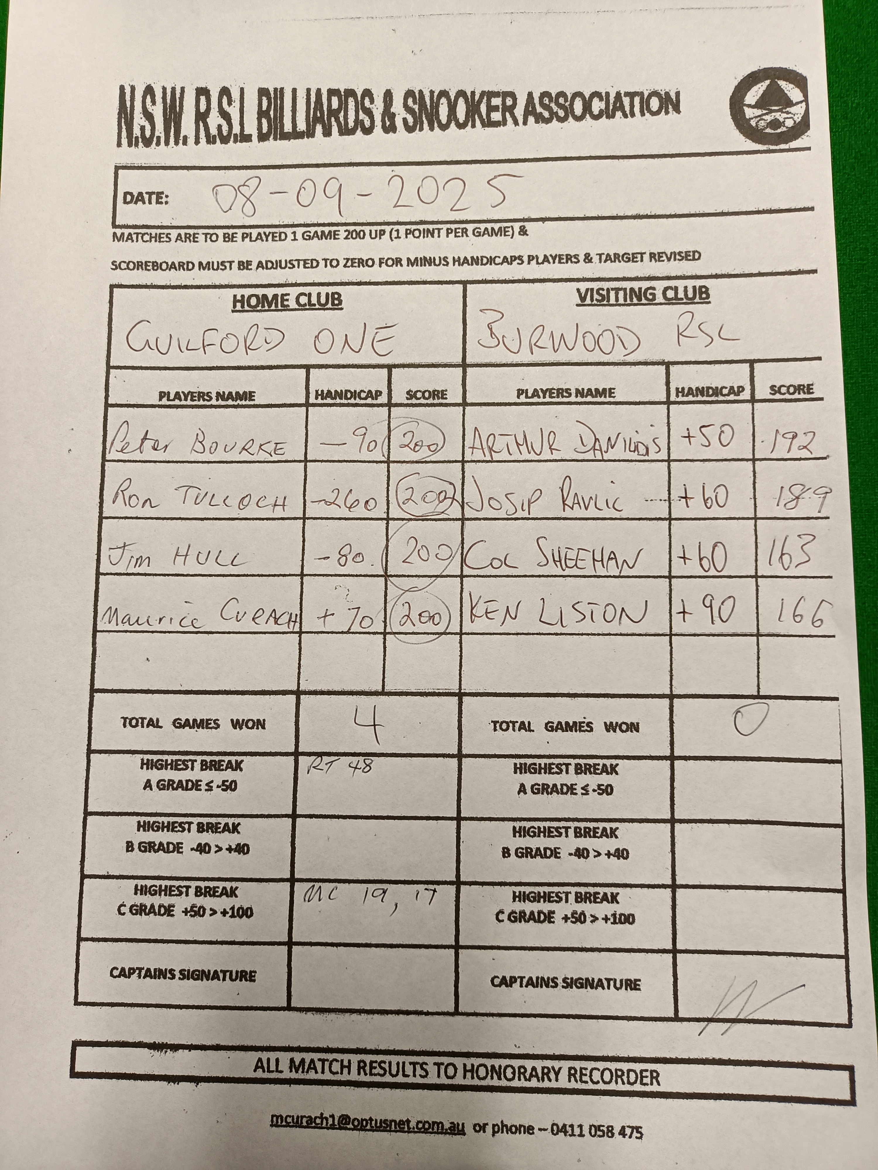 | Peter Bourke (-90) | Arthur Danilidis (50) | 2025-09-08 21:56:29 | Div1 - Burwood | ||||||||