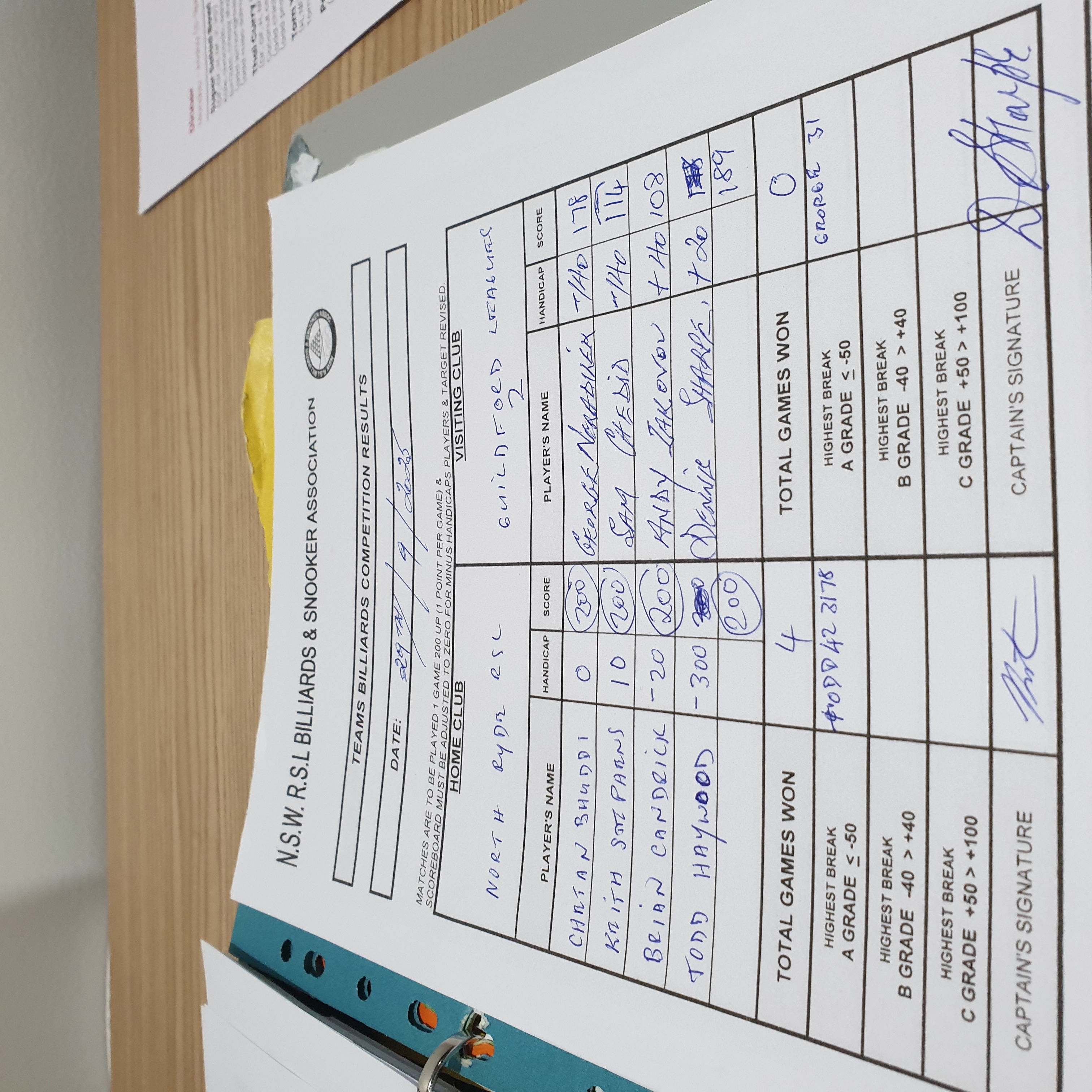 | POS | North Ryde | Score | PTS | Break | Guildford #2 | Score | PTS | Breaks | Result Note | Updated on | Update by |