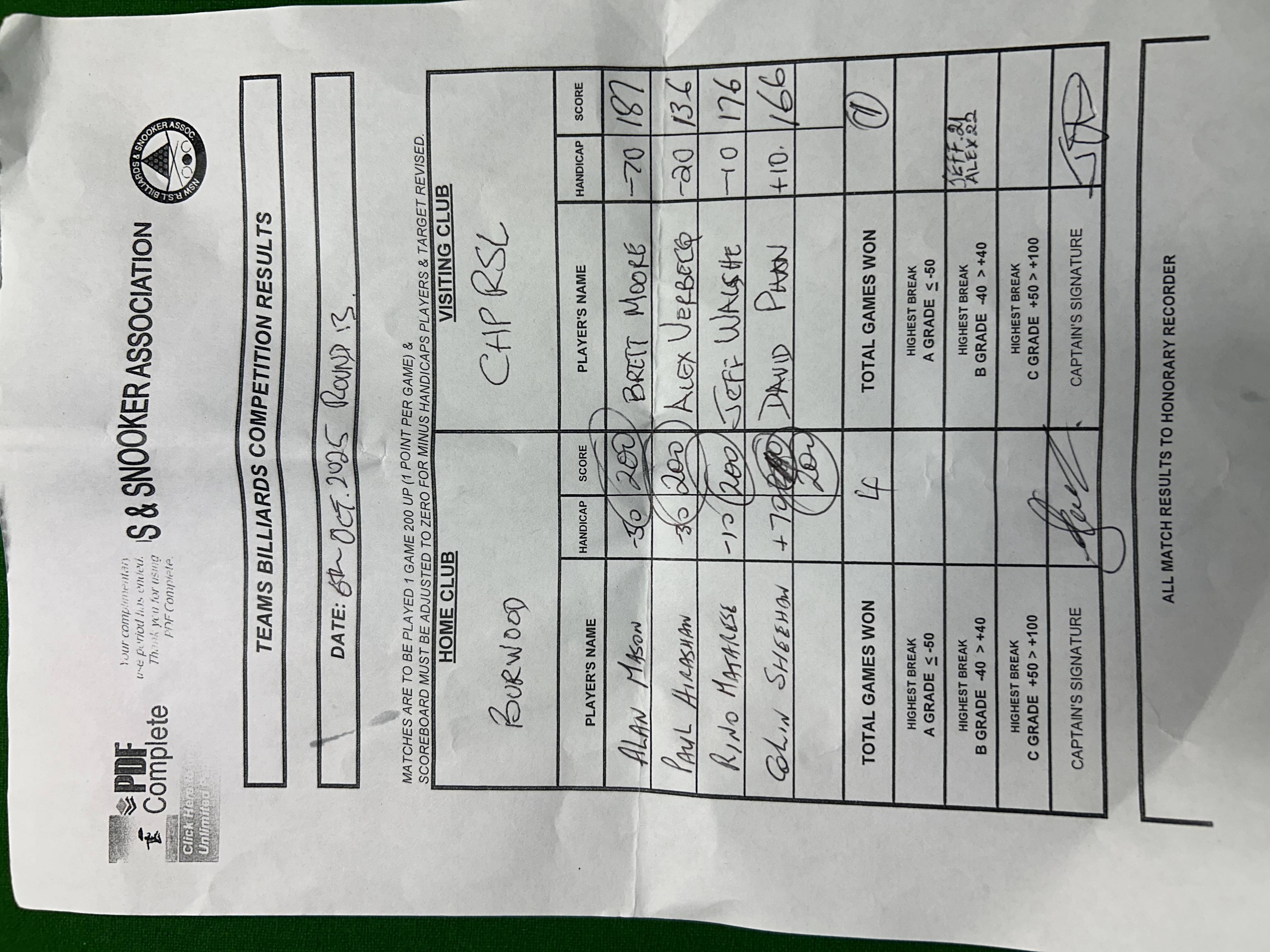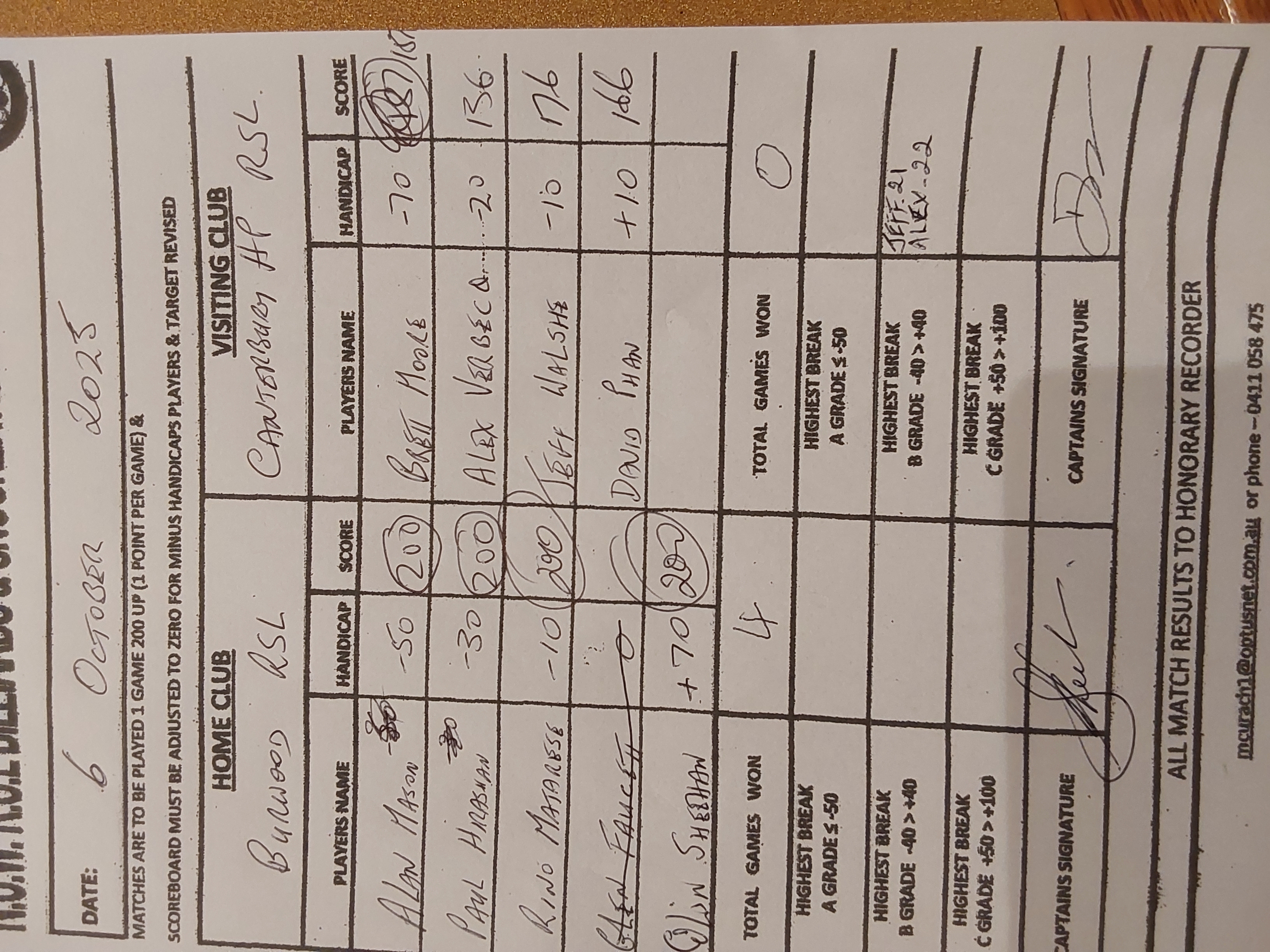 | Alan Mason (-50) | Brett Moore (-70) | 2025-10-06 22:37:10 | Div1 - Canterbury H/P | ||||||||