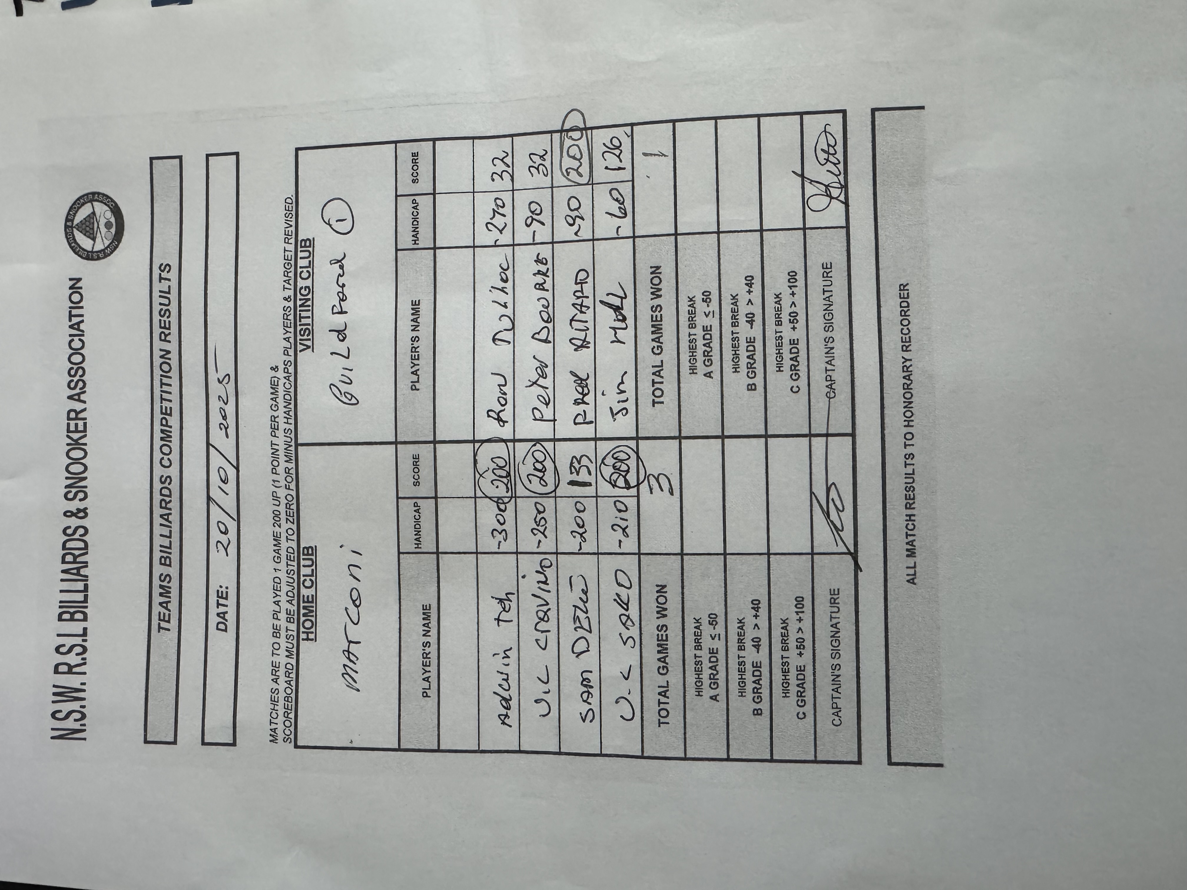 | Adwin Teh (-300) | Ron Tulloch (-270) | 2025-10-21 08:22:53 | Div1 - Marconi | ||||||||