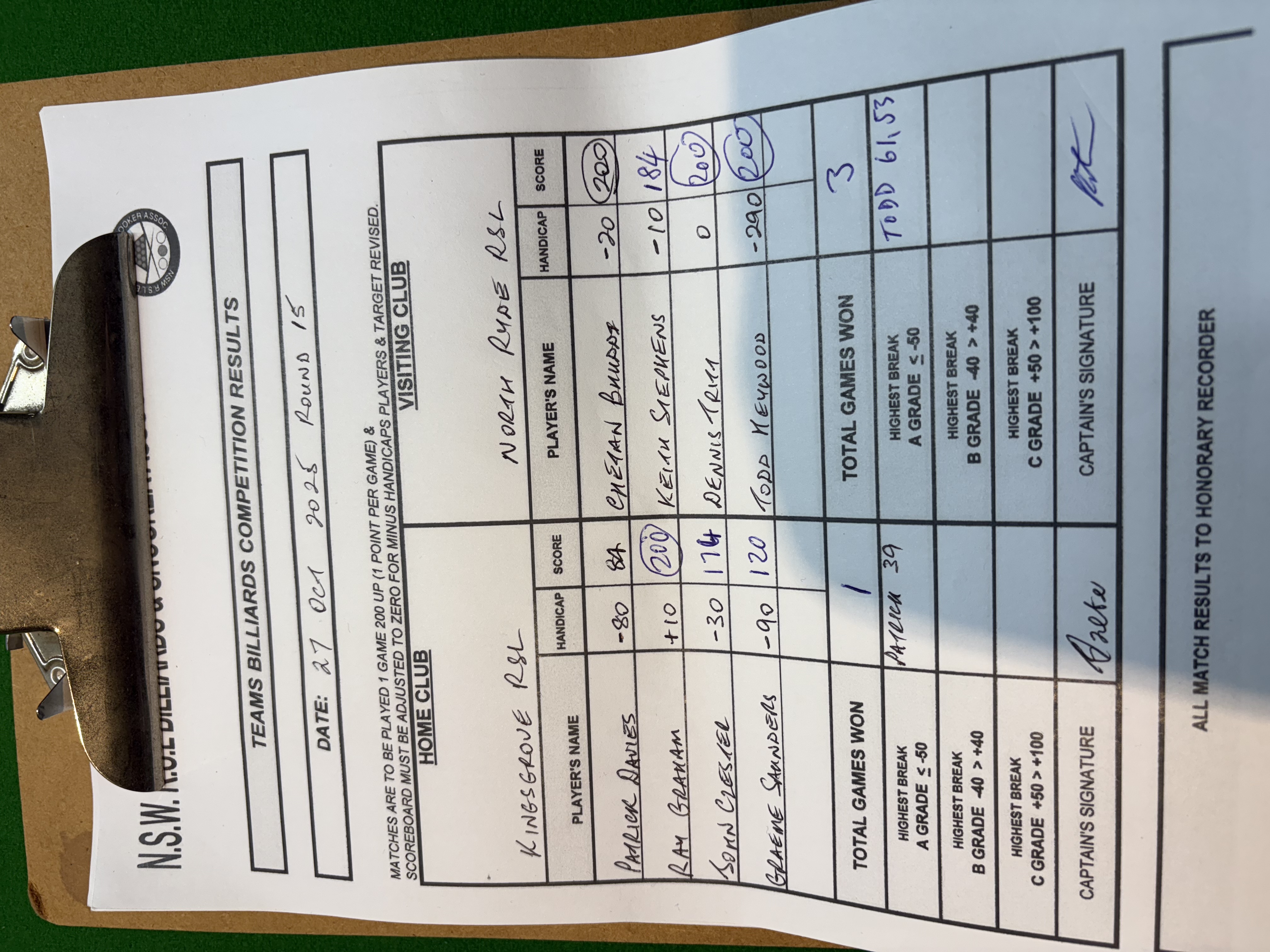 | Graeme Saunders (-90) | Todd Haywood (-290) | 2025-10-28 07:06:11 | Div1 - North Ryde |