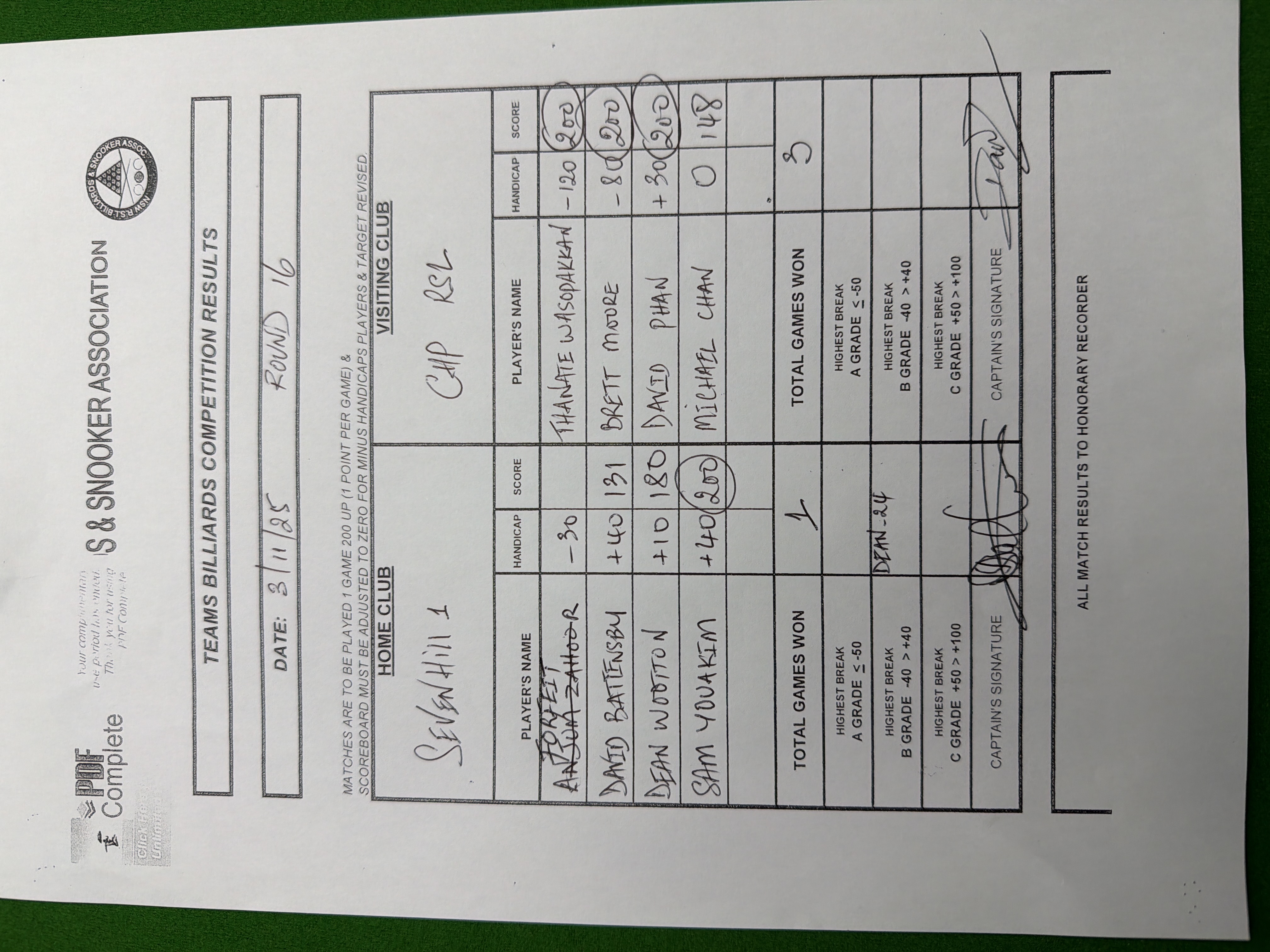 | POS | Seven Hills #1 | Score | PTS | Break | Canterbury H/P | Score | PTS | Breaks | Result Note | Updated on | Update by |