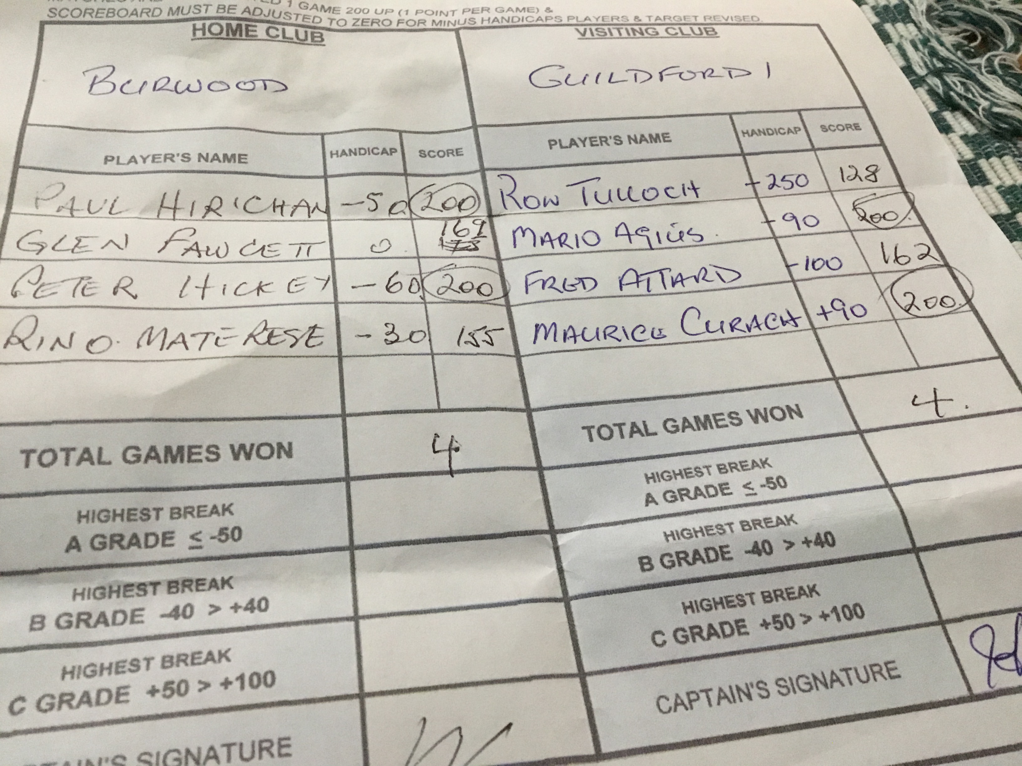 | POS | Burwood | Score | PTS | Break | Guildford #1 | Score | PTS | Breaks | Result Note | Updated on | Update by |