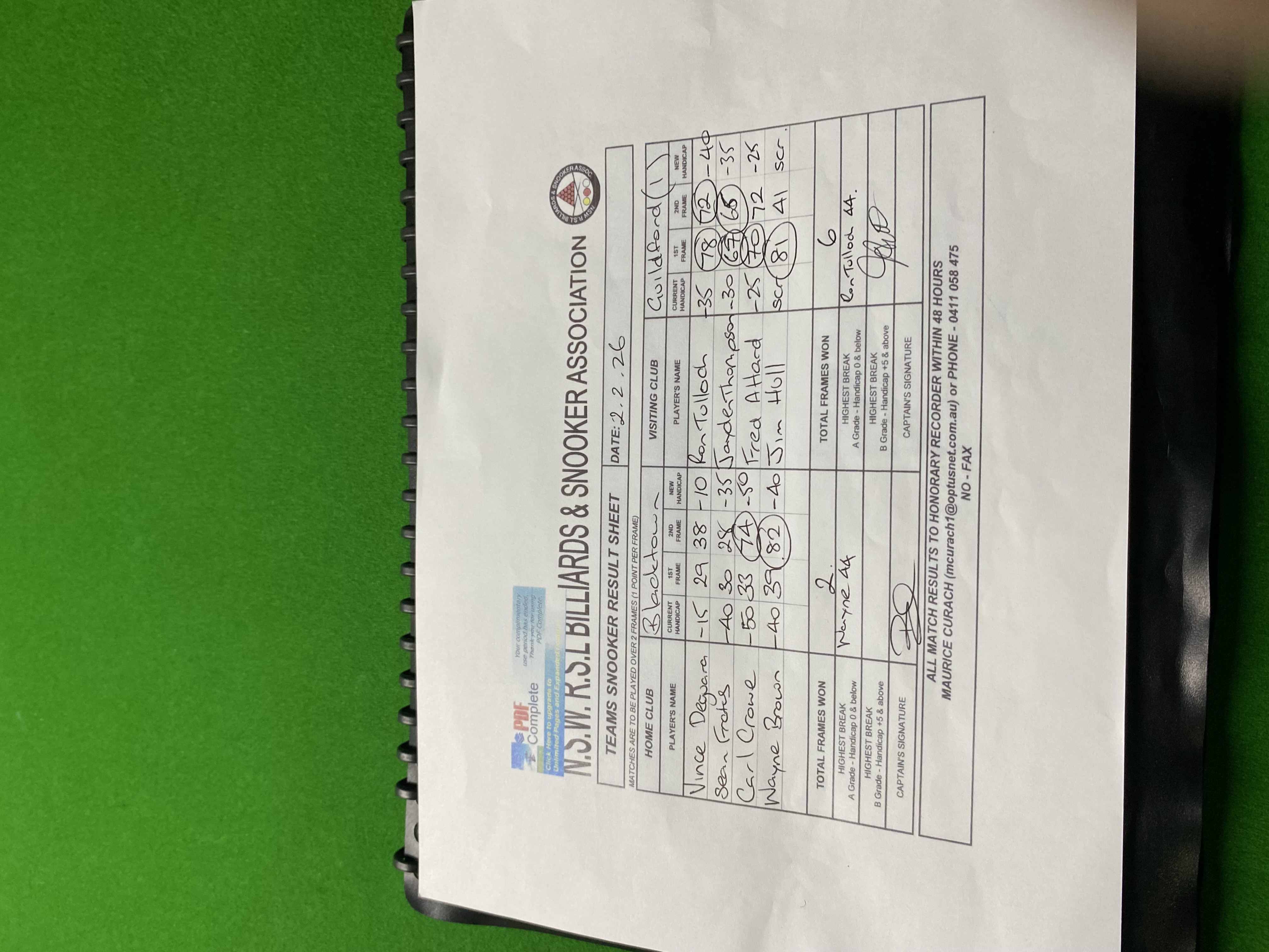 | POS | Blacktown | Frame 1 | Net | Frame 2 | Net | PTS | Breaks | Guildford #1 | Frame 1 | Net | Frame 2 | Net | PTS | Breaks | Result Note | Updated on | Update by |