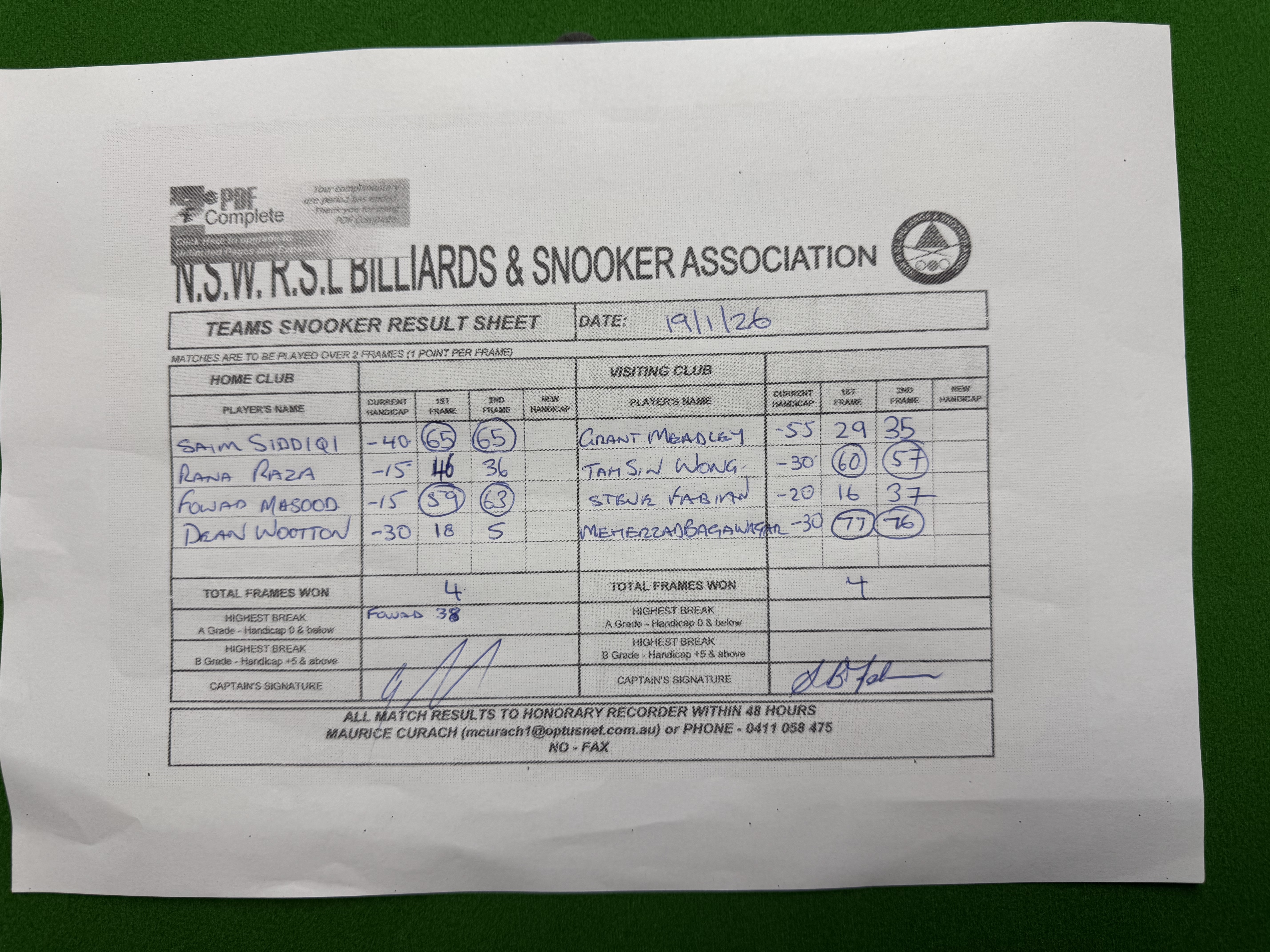 | Saim Siddiqi (-40) | Grant Meadley (-55) | 2026-01-26 21:42:55 | Graham Douglas | ||||||||||||||