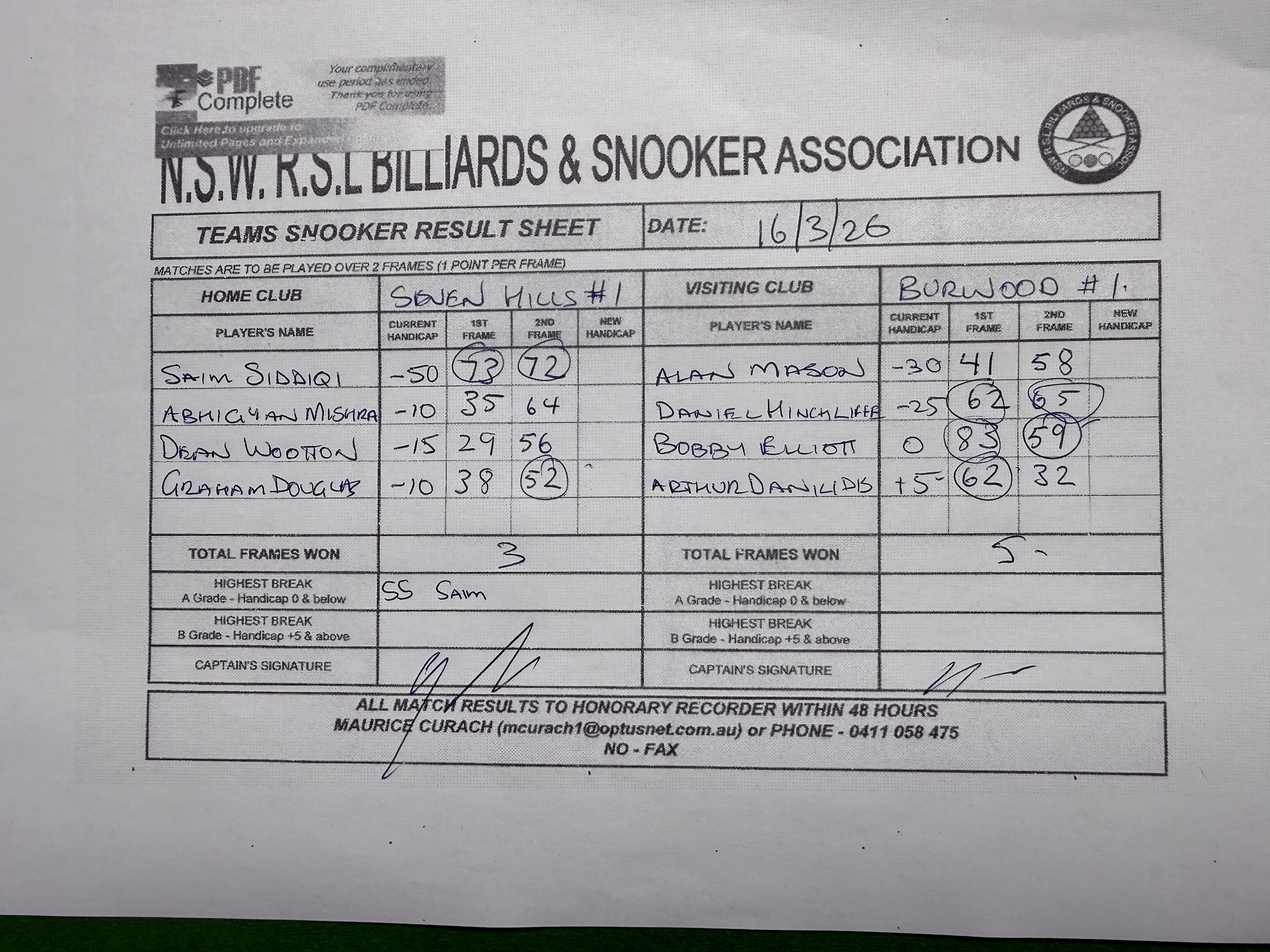 | Saim Siddiqi (-50) | Allan Mason (-30) | 2026-03-16 21:17:50 | Burwood #1 | ||||||||||||||