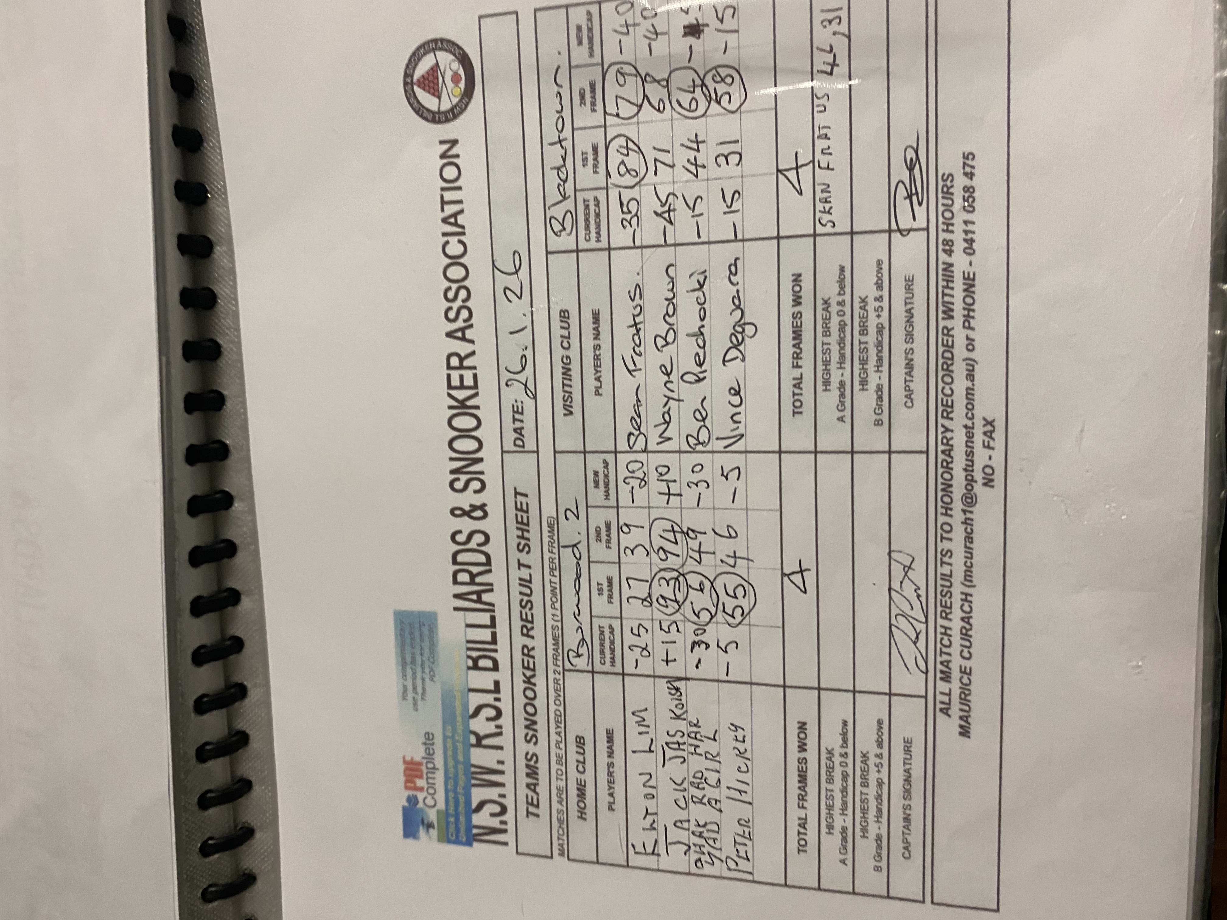 | Peter Hickey (-5) | Vince DeGuara (-15) | 2026-01-27 01:06:18 | Burwood #2 |