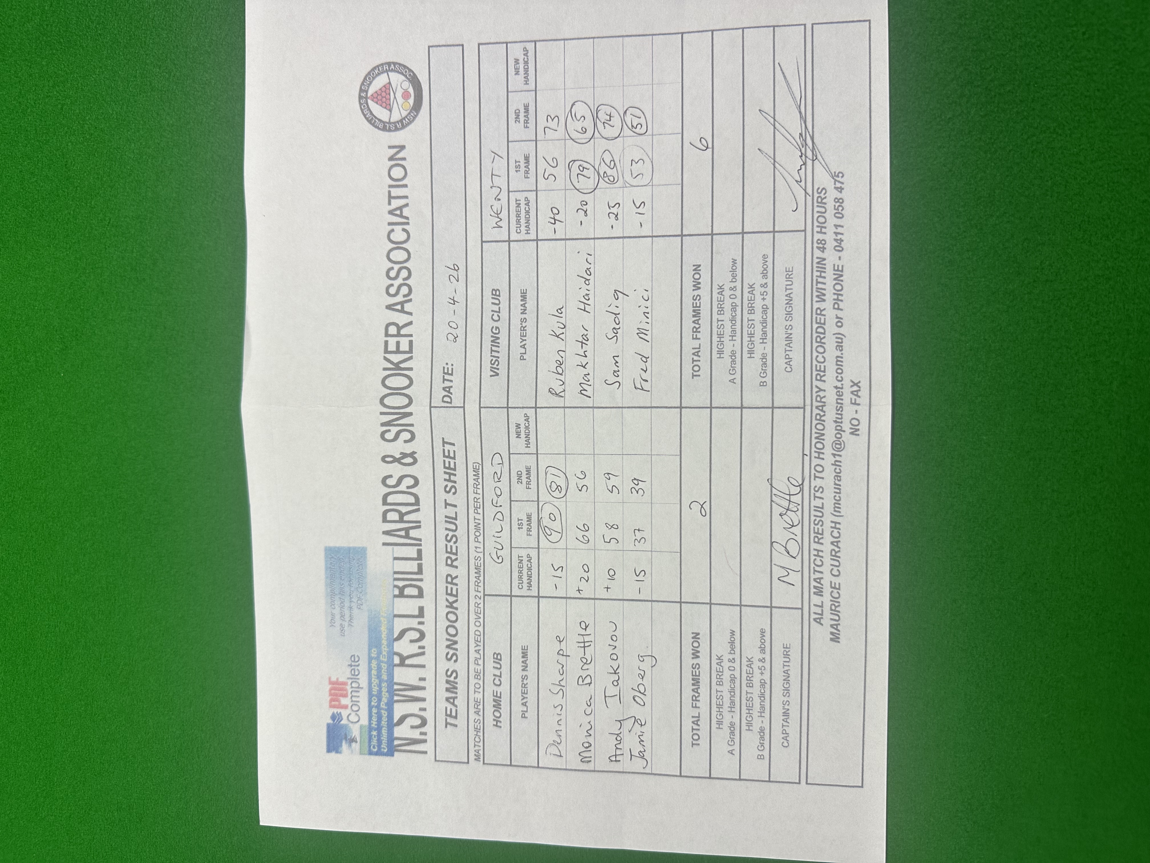 | Dennis Sharpe (-15) | Rubin Kula (-40) | 2026-04-21 12:37:54 | Guildford #2 | ||||||||||||||