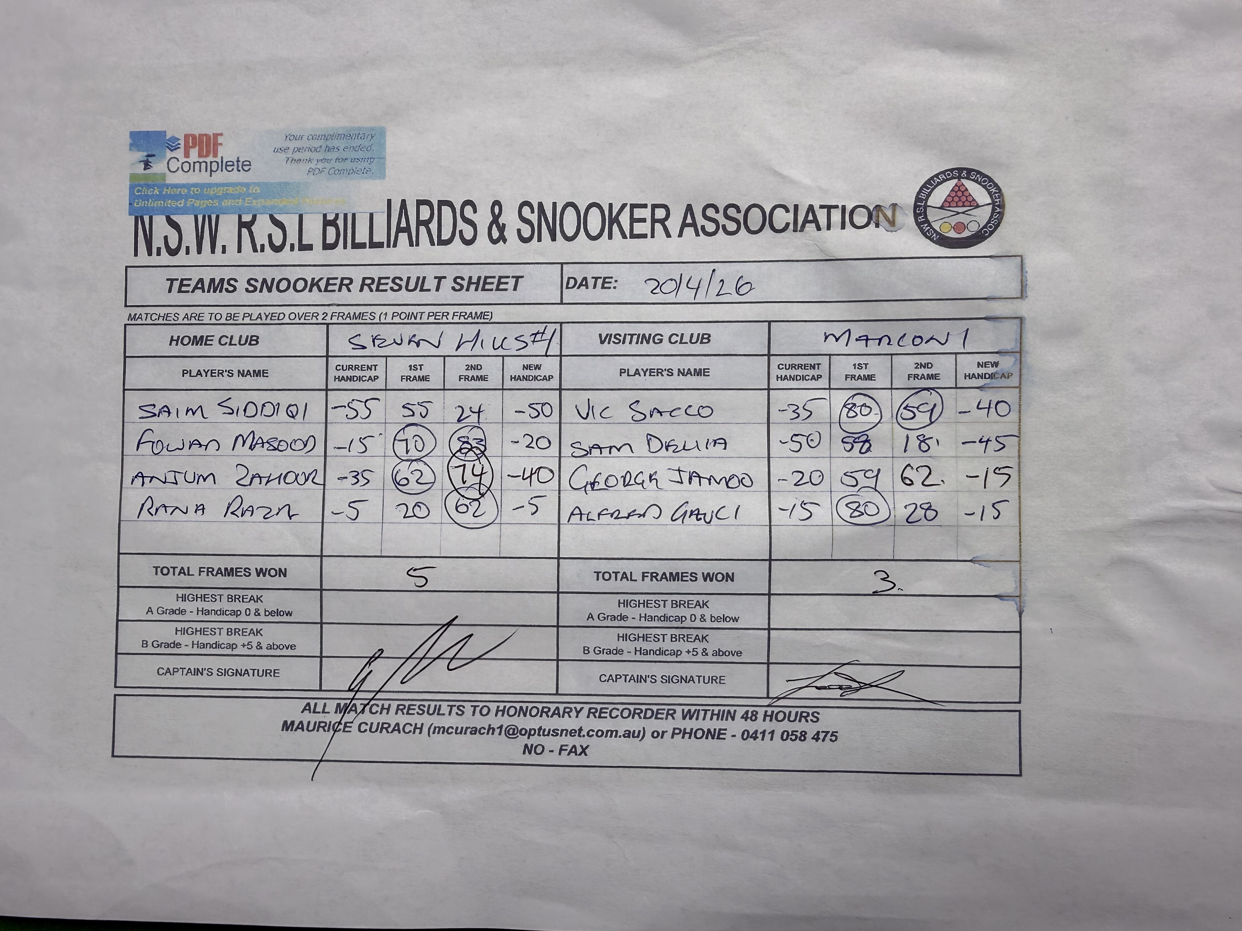 | Anjum Zahoor (-35) | George Jamoo (-20) | 2026-04-20 23:54:54 | Marconi | ||||||||||||||