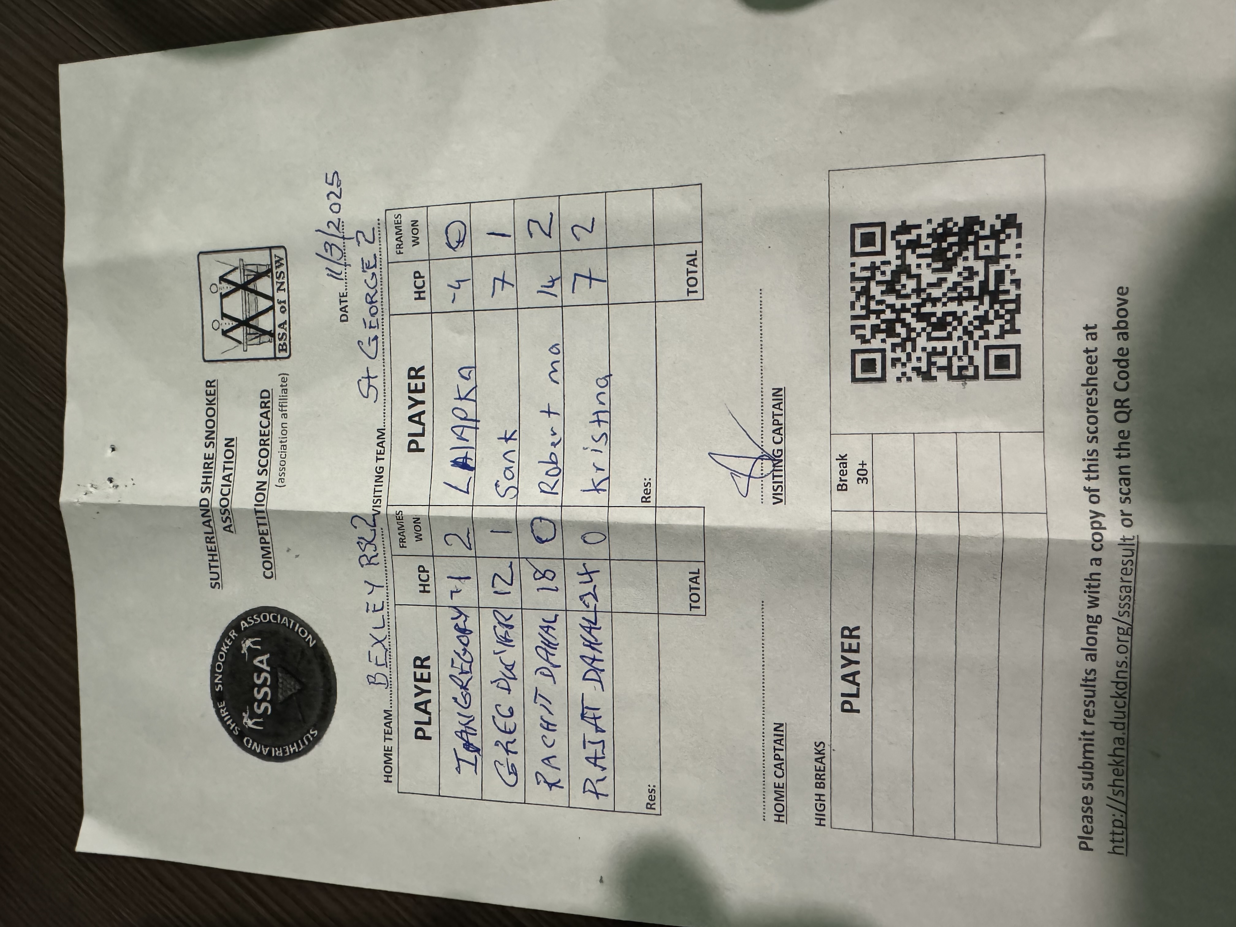 | Rajat Dahal (24) | Krishna Karki (7) | 2025-03-11 21:35:03 | Bexley RSL #2 |