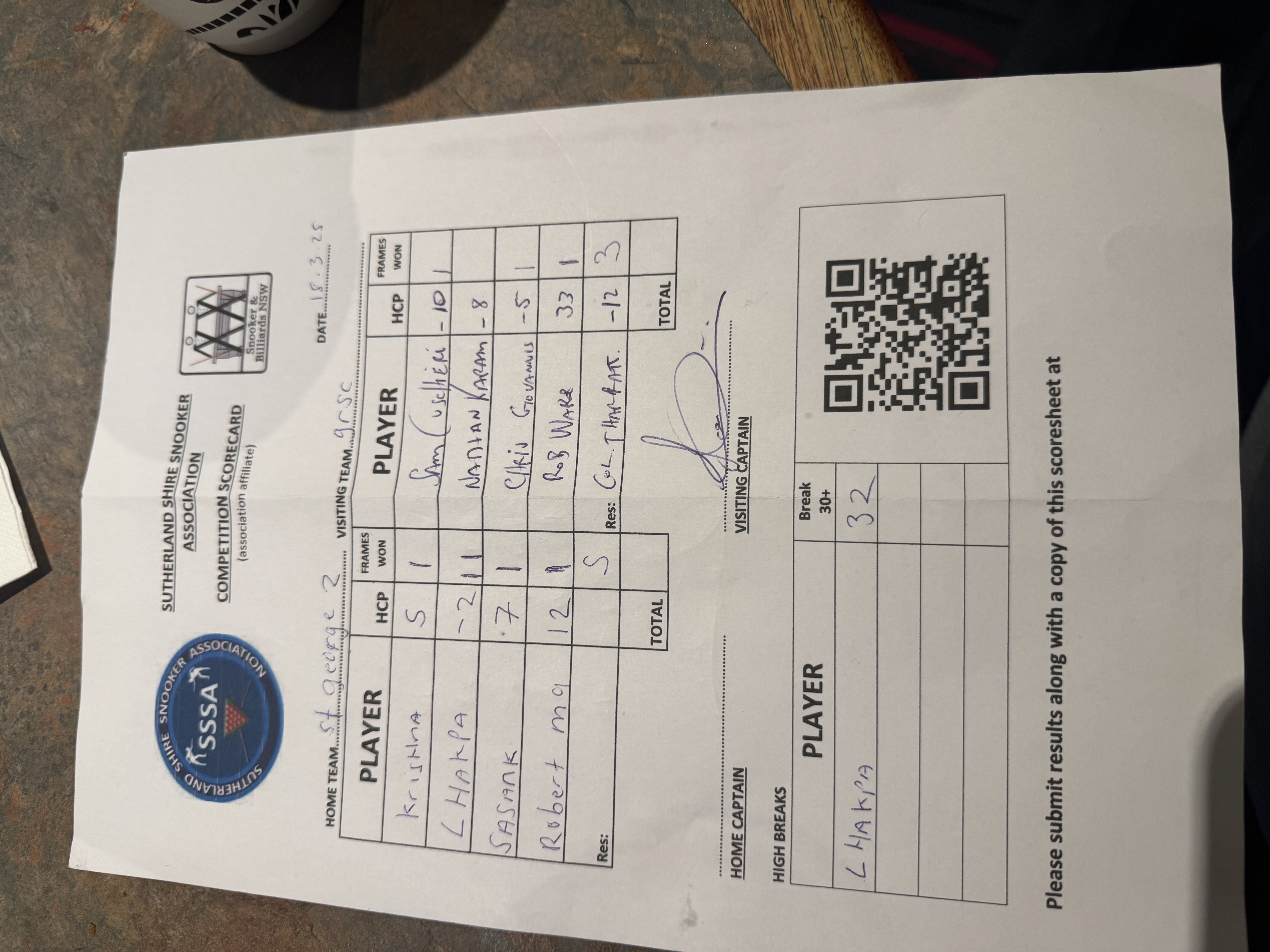 | Robert Ma (12) | Rob Ware (33) | 2025-03-18 22:08:47 | St George #2 |