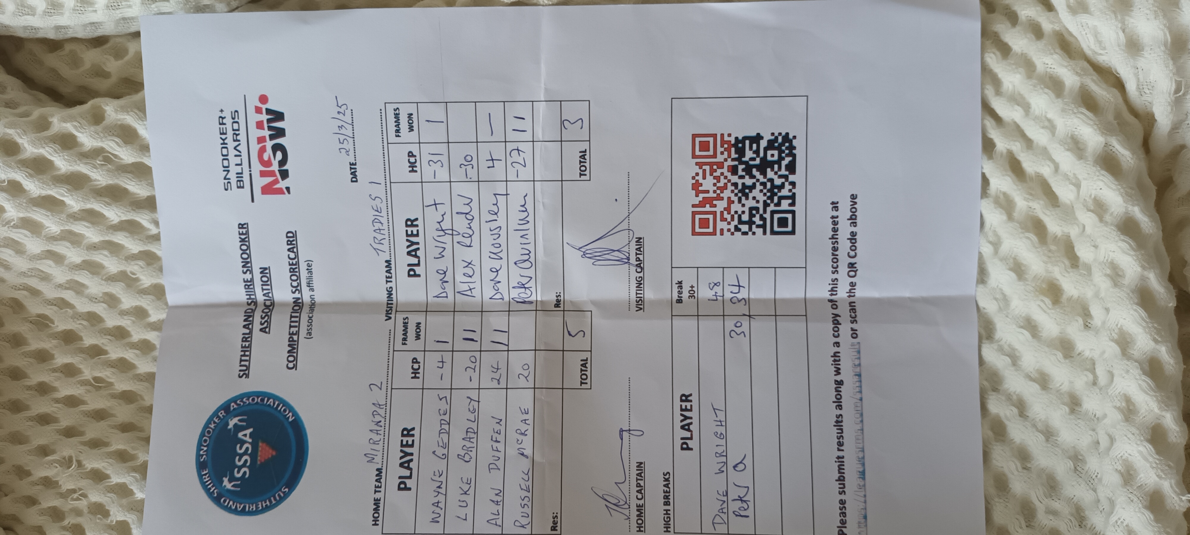 | Wayne Geddes (-4) | Dave Wright (-31) | 2025-03-26 11:38:34 | Miranda RSL #2 | ||||||