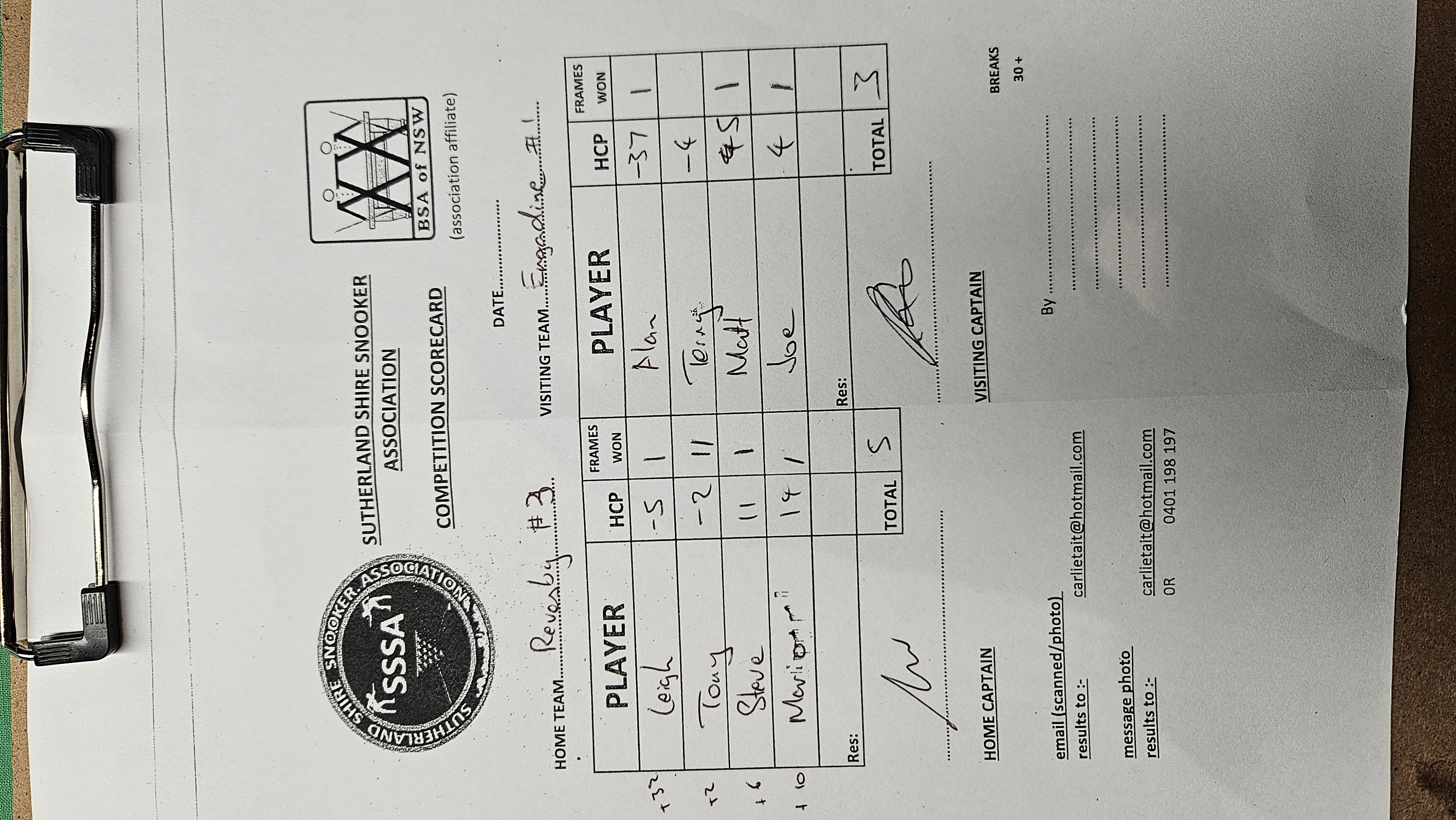 | POS | Revesby Workers #3 | Frame Won | Break | Engadine #1 | Frame Won | Break | Result Note | Updated on | Update by |