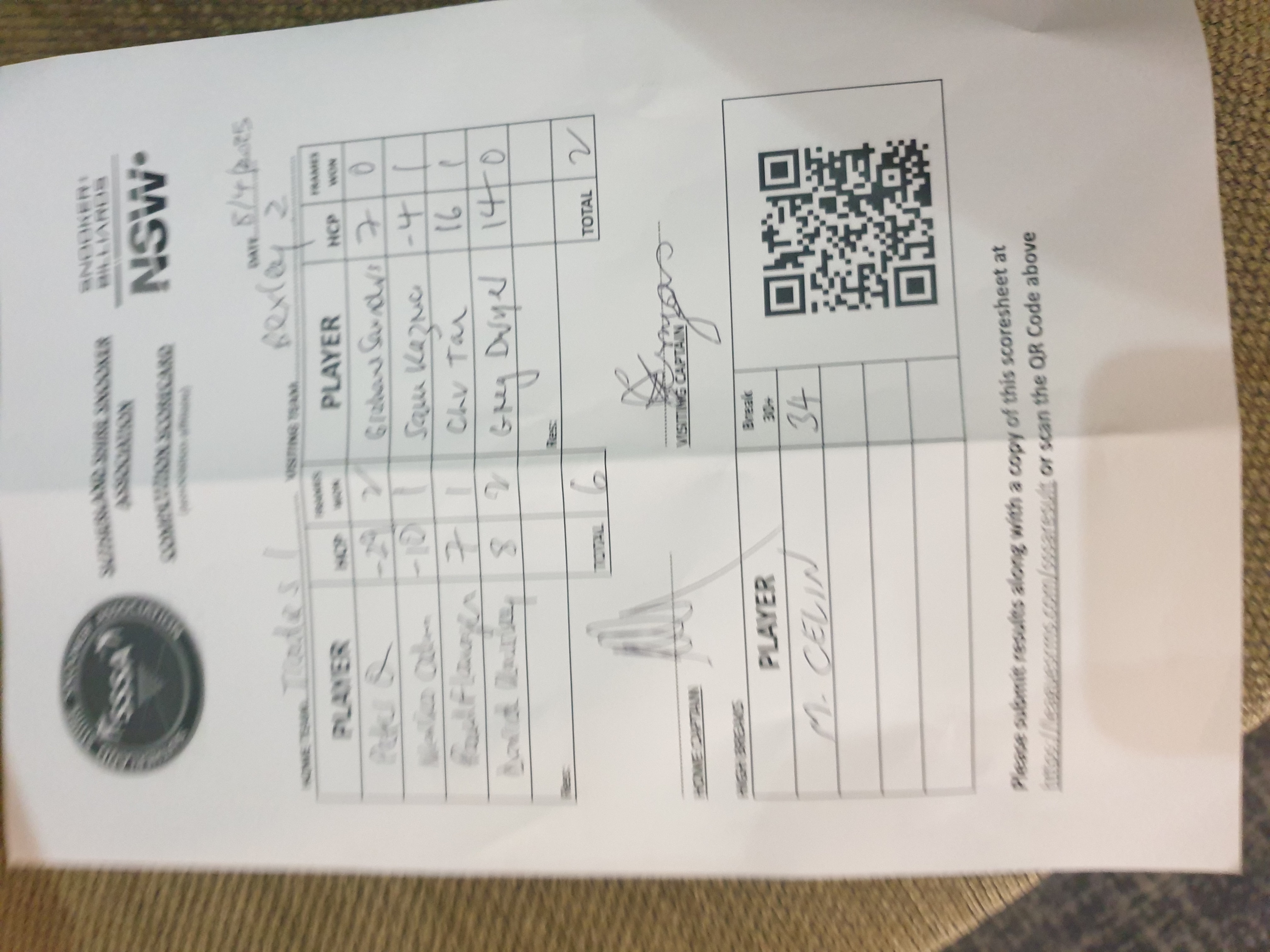 | POS | Tradies #1 | Frame Won | Break | Bexley RSL #2 | Frame Won | Break | Result Note | Updated on | Update by |