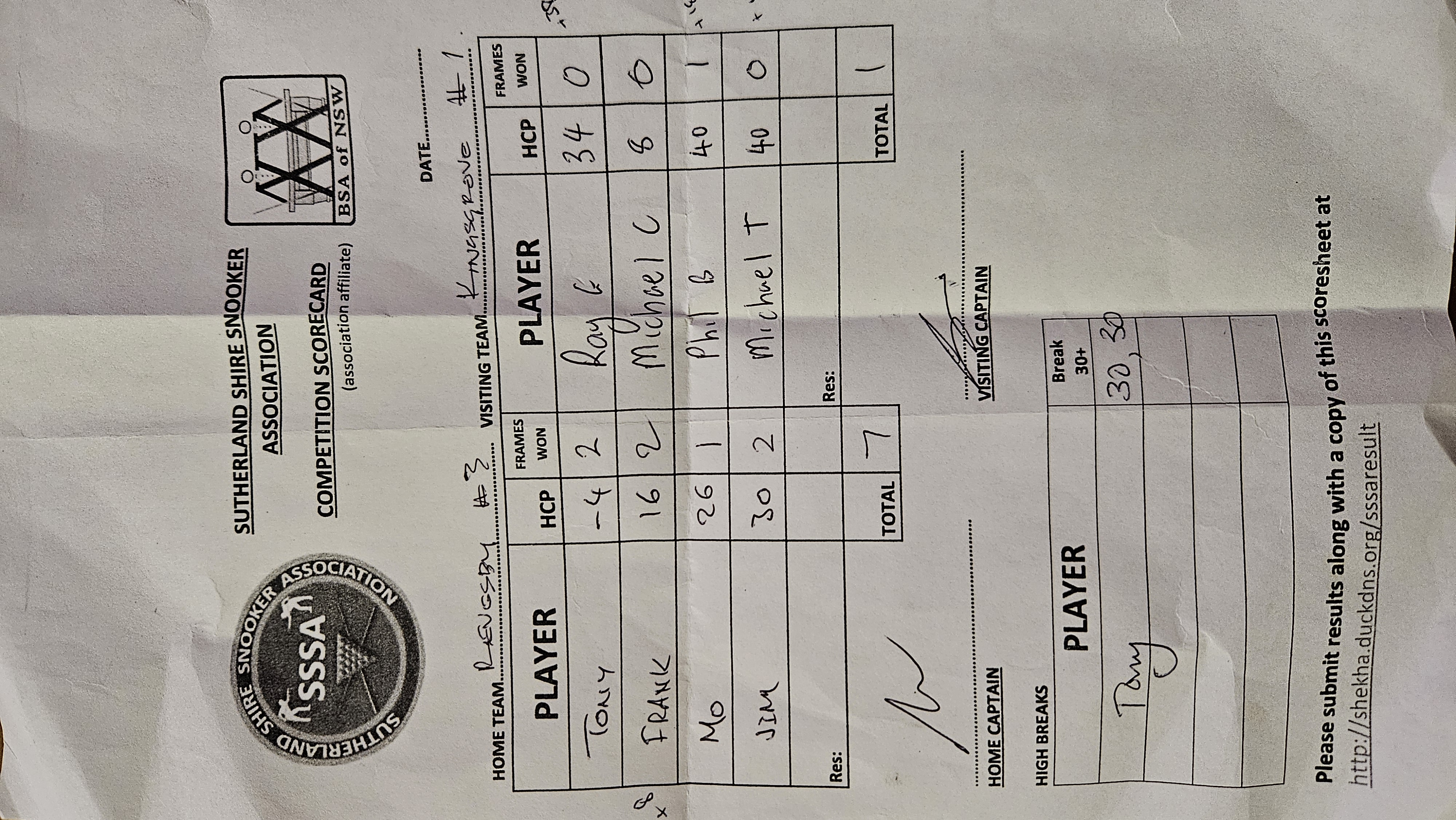 | POS | Revesby Workers #3 | Frame Won | Break | Kingsgrove #1 | Frame Won | Break | Result Note | Updated on | Update by |