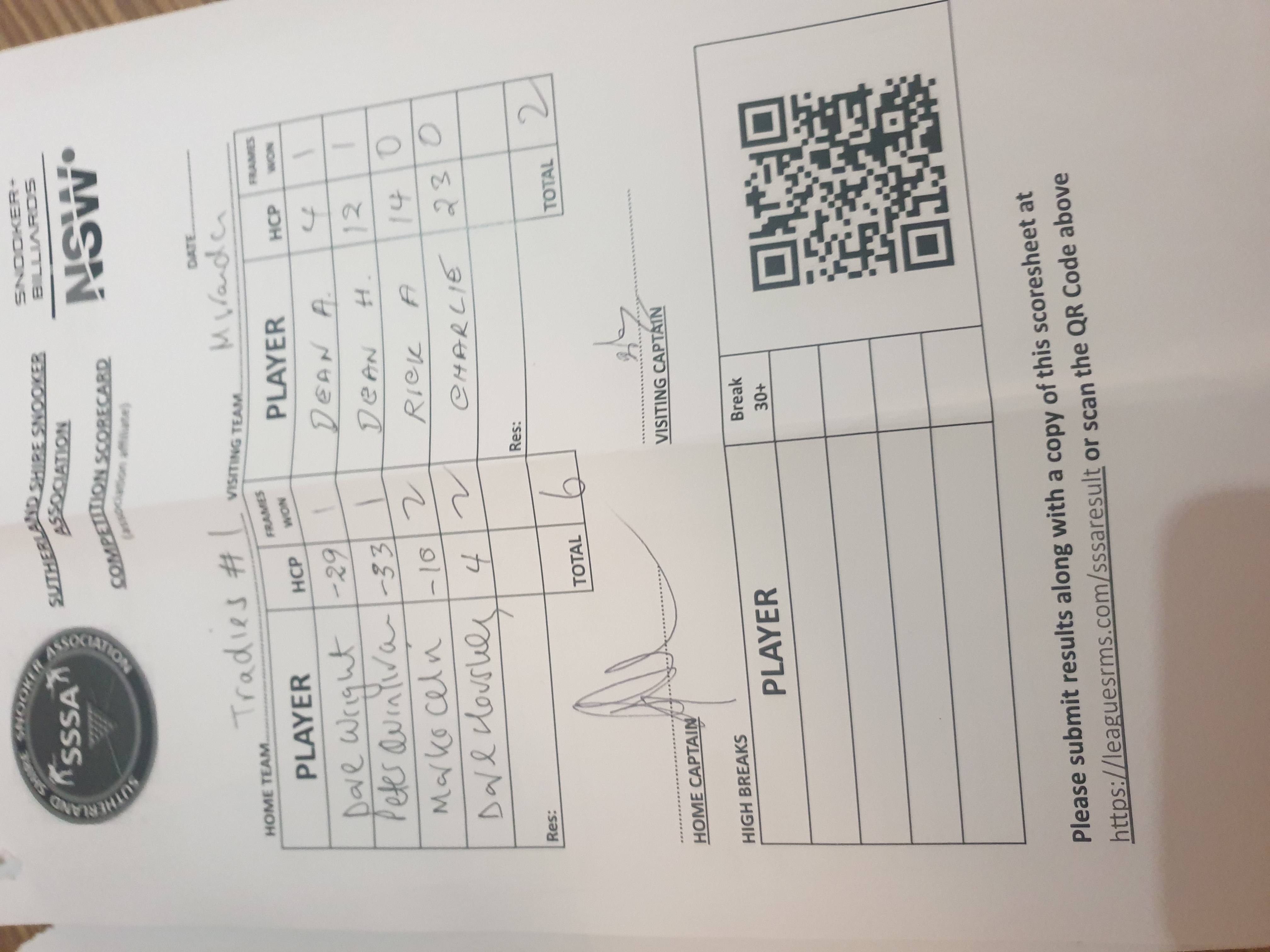 | David Mark Housley (4) | Charlie Potapahkdi (23) | 2025-05-06 22:44:31 | Tradies #1 |