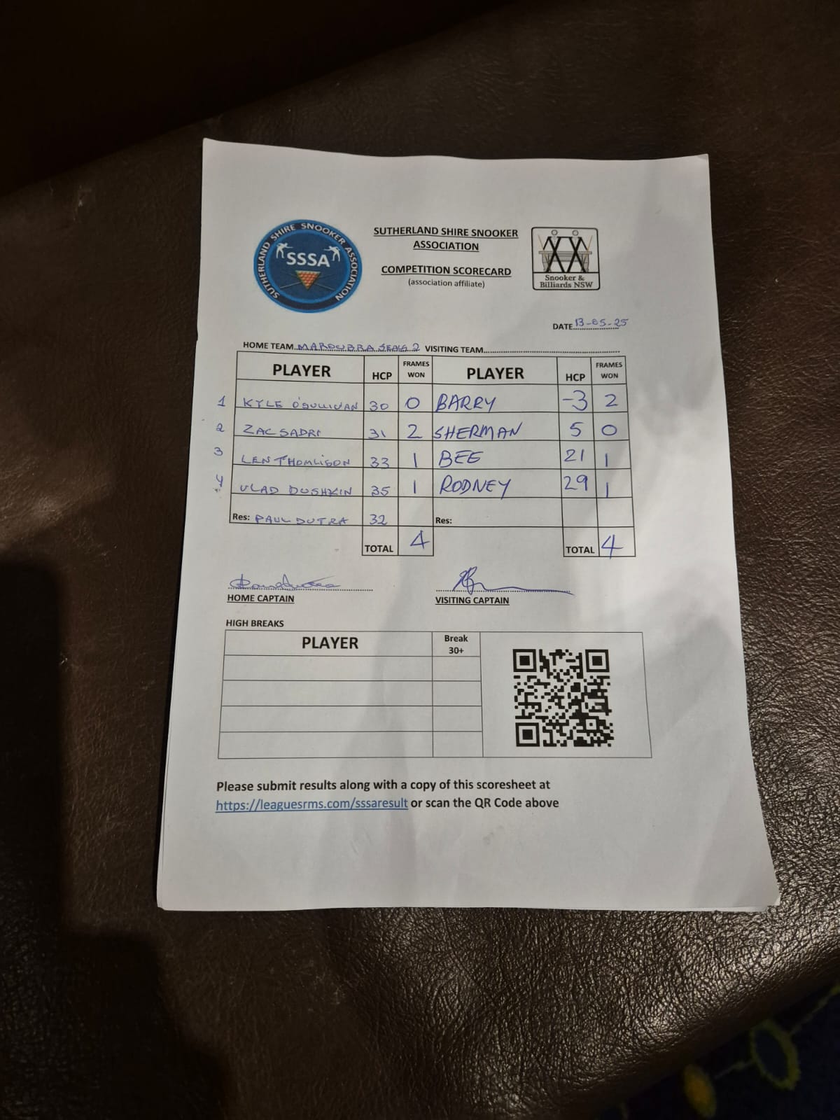 | POS | Maroubra Seals #2 | Frame Won | Break | St George #1 | Frame Won | Break | Result Note | Updated on | Update by |