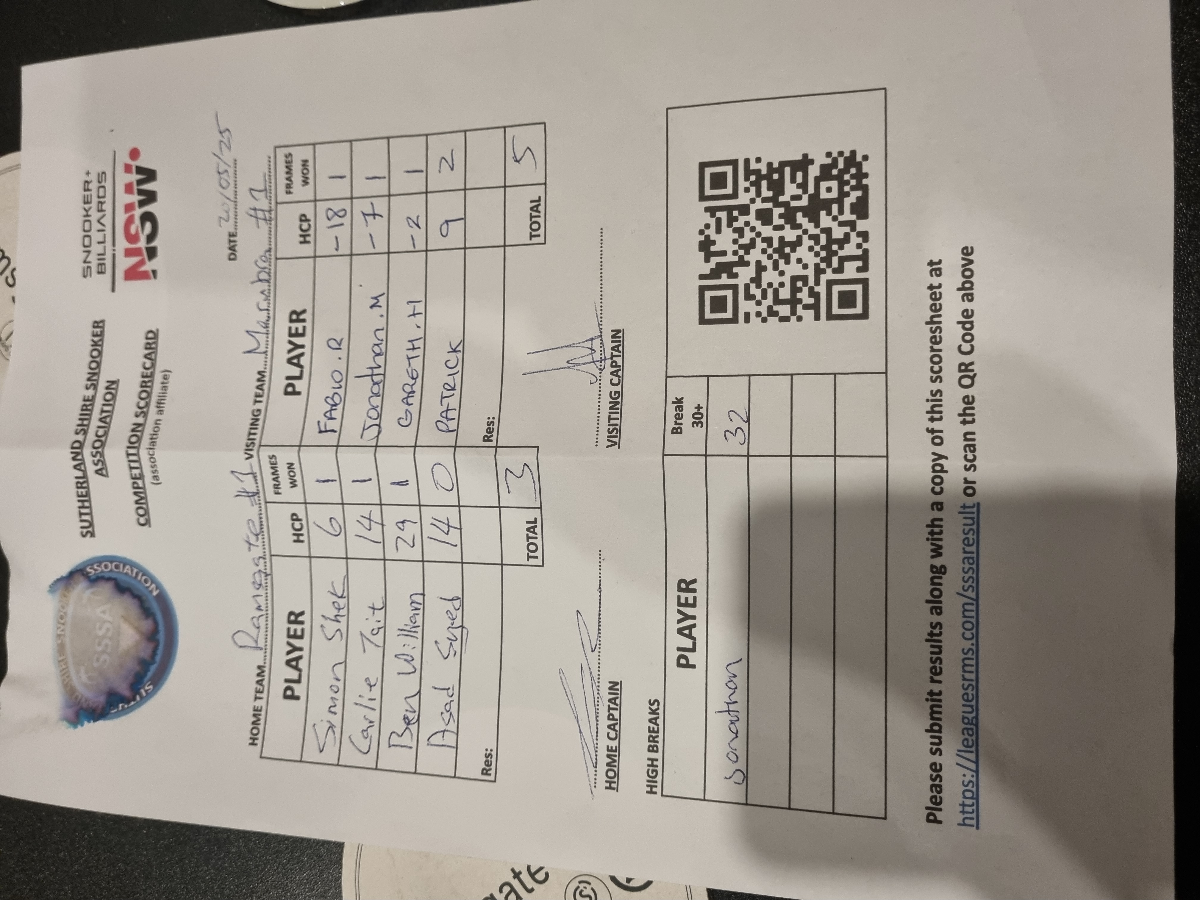 | POS | Ramsgate RSL #1 | Frame Won | Break | Maroubra Seals #1 | Frame Won | Break | Result Note | Updated on | Update by |