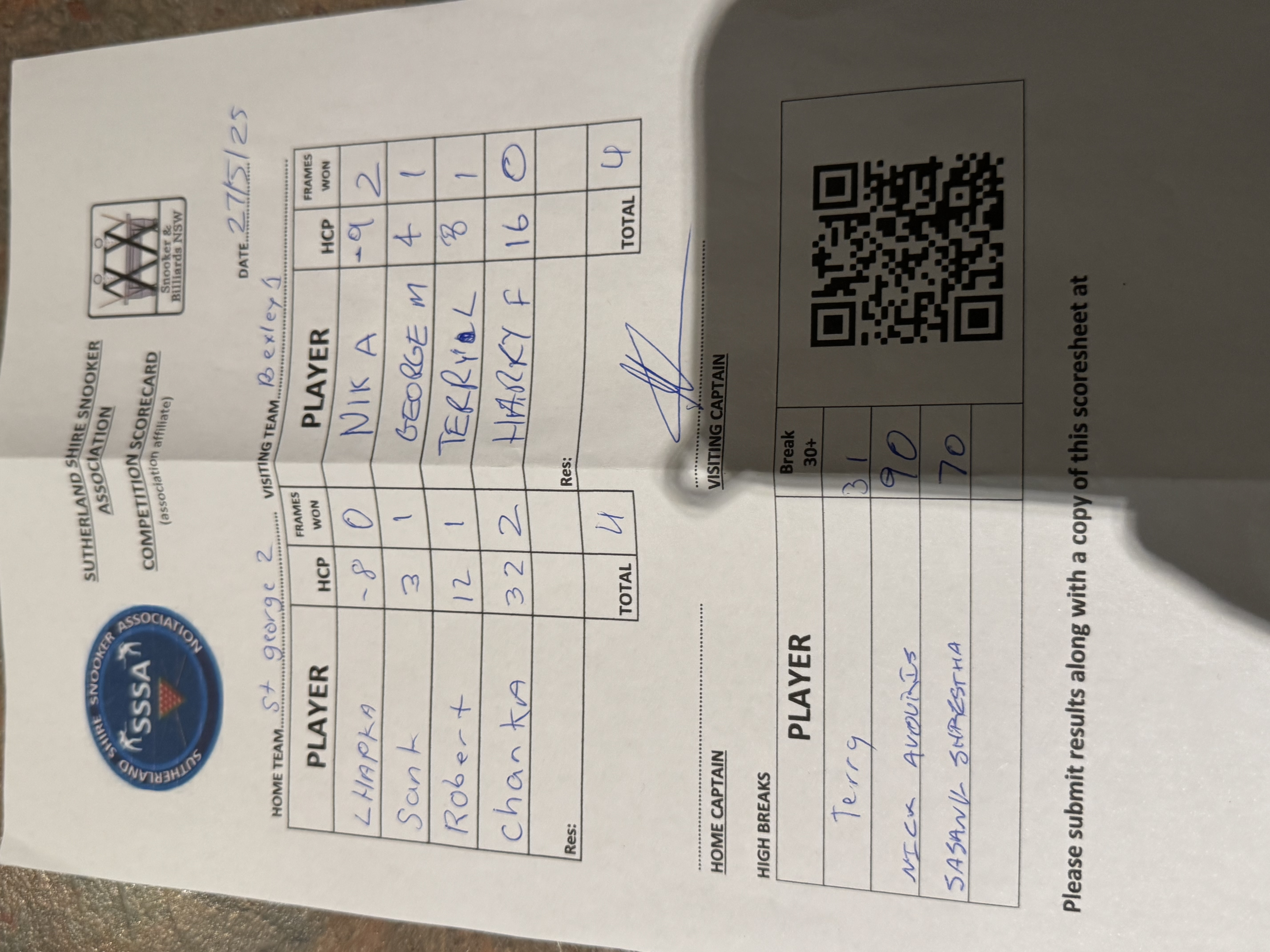 | Robert Ma (12) | Terry Lai (8) | 2025-05-27 20:34:19 | St George #2 | ||||||