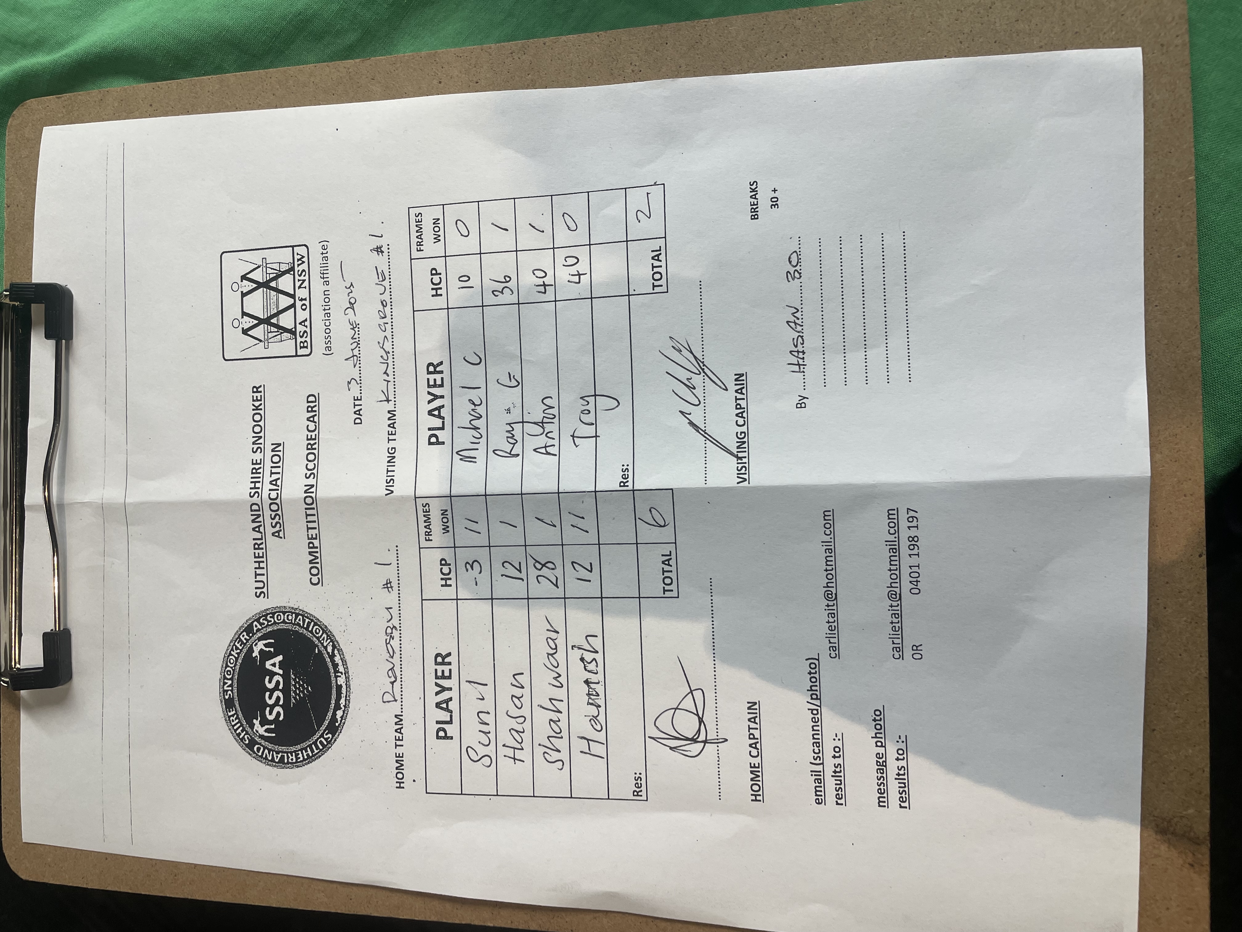 | POS | Revesby Workers #1 | Frame Won | Break | Kingsgrove #1 | Frame Won | Break | Result Note | Updated on | Update by |
