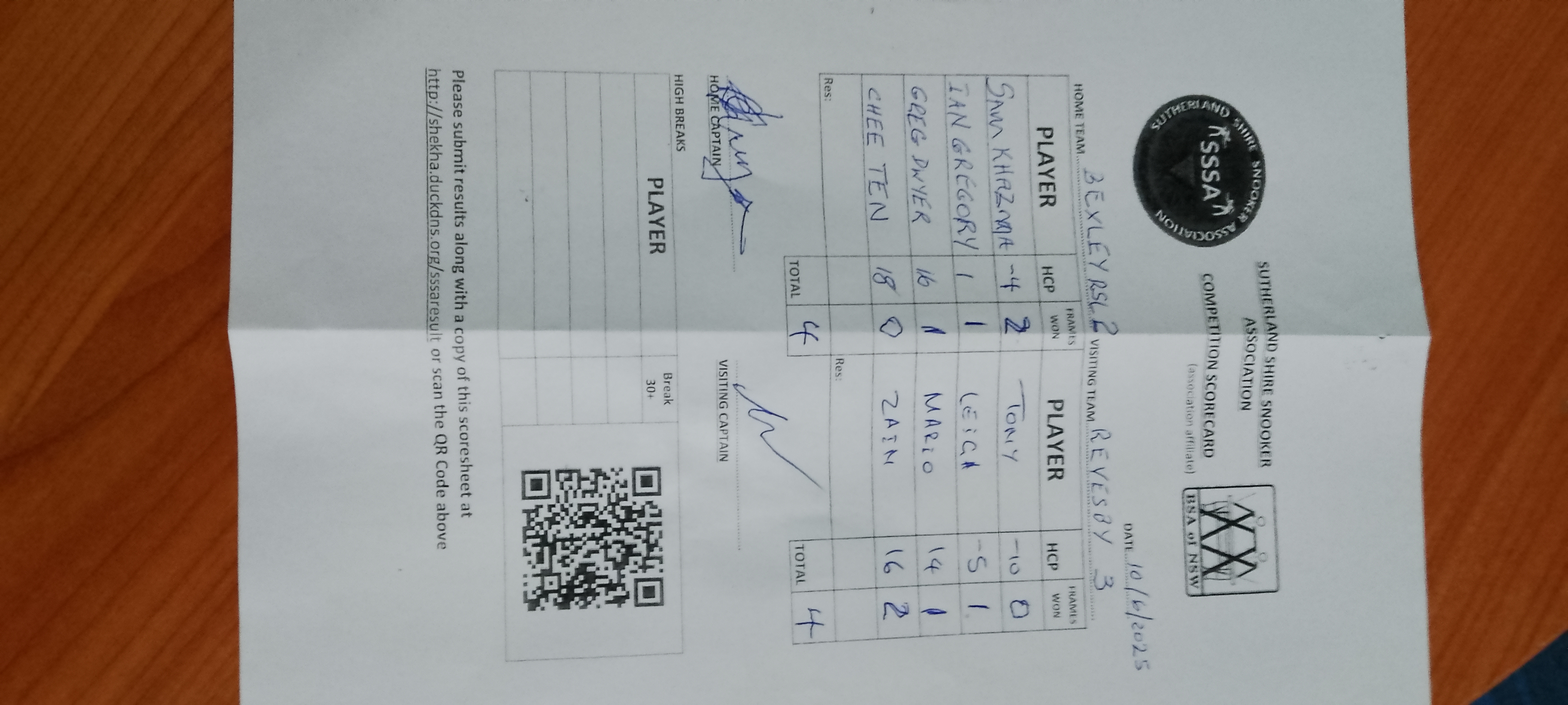 | Chee Ten (18) | Zain Anwar (16) | 2025-06-10 21:57:01 | Bexley RSL #2 |