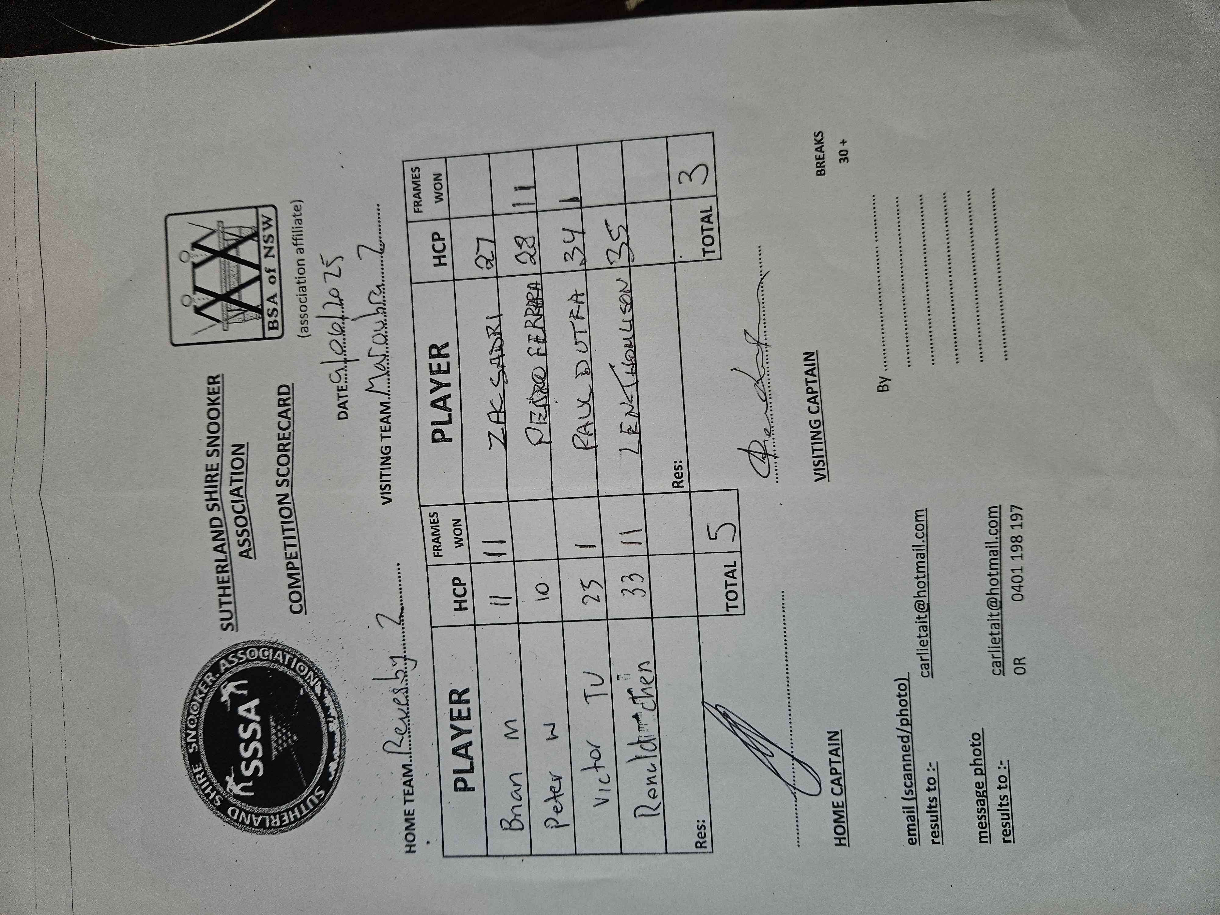 | Ronald Chen (33) | Len Thomlison (35) | 2025-06-10 21:40:36 | Revesby Workers #2 |