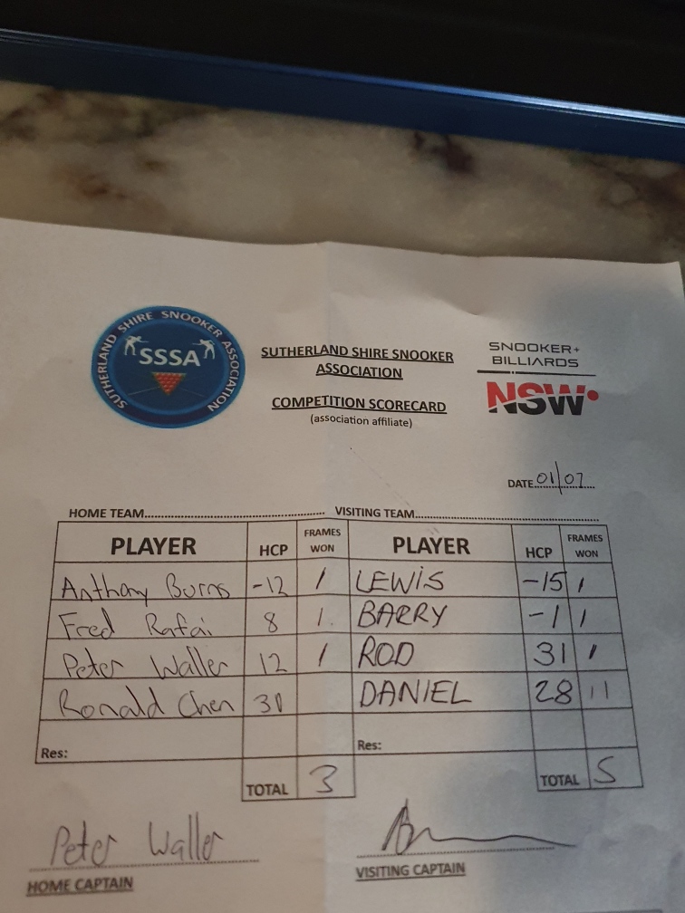 | POS | Revesby Workers #2 | Frame Won | Break | St George #1 | Frame Won | Break | Result Note | Updated on | Update by |