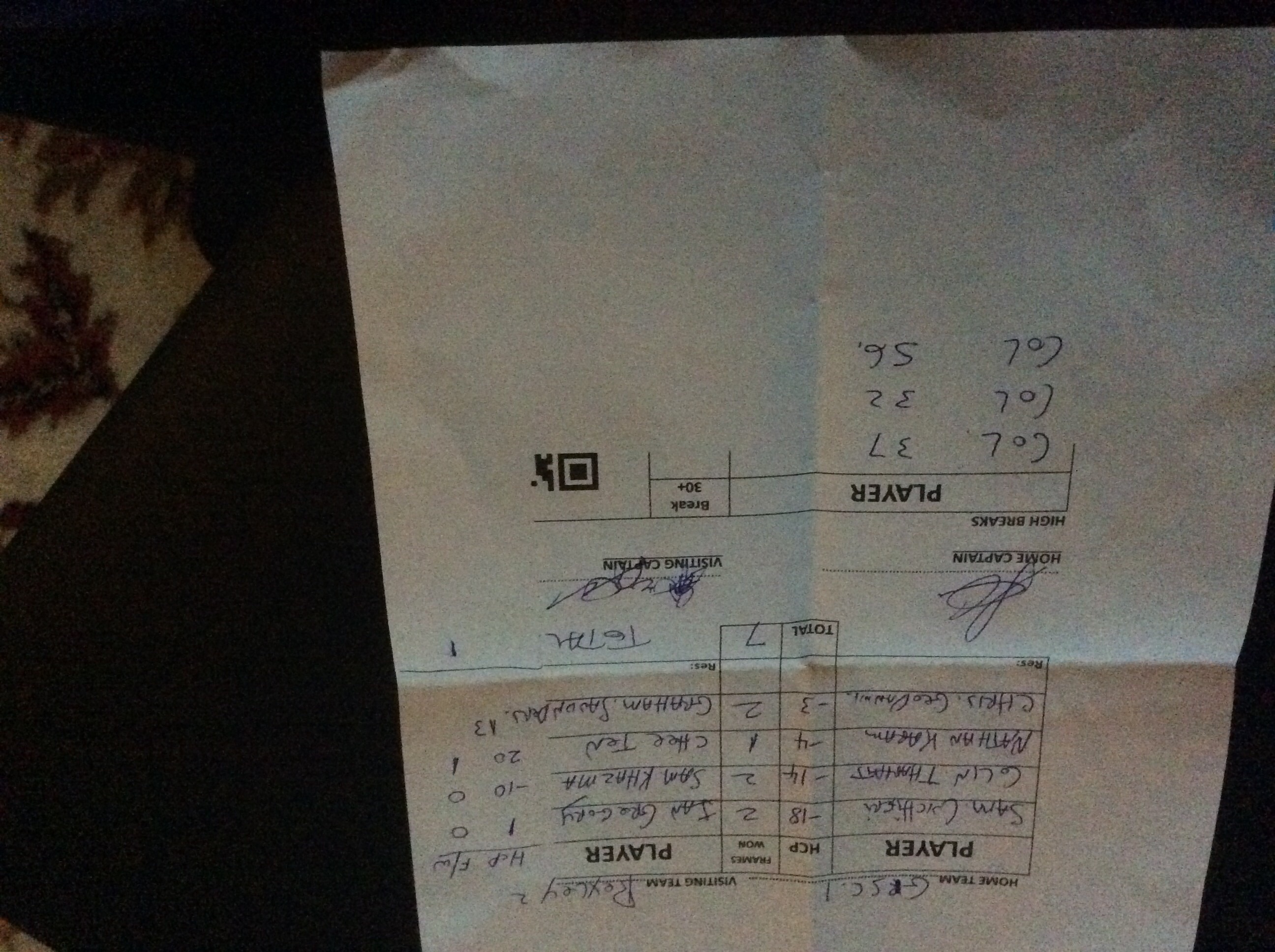 | POS | Georges River #1 | Frame Won | Break | Bexley RSL #2 | Frame Won | Break | Result Note | Updated on | Update by |