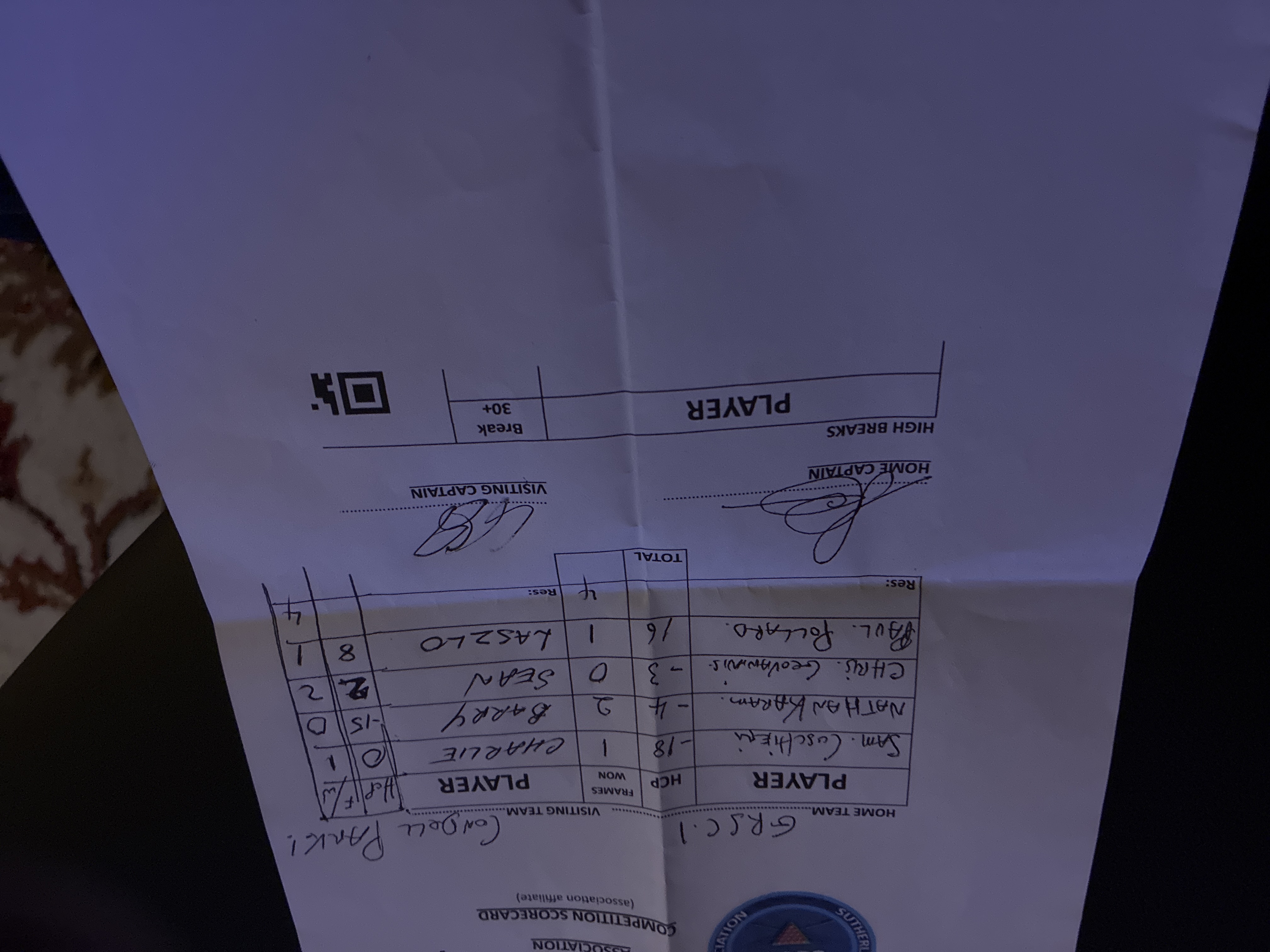 | POS | Georges River #1 | Frame Won | Break | Condell Park #1 | Frame Won | Break | Result Note | Updated on | Update by |