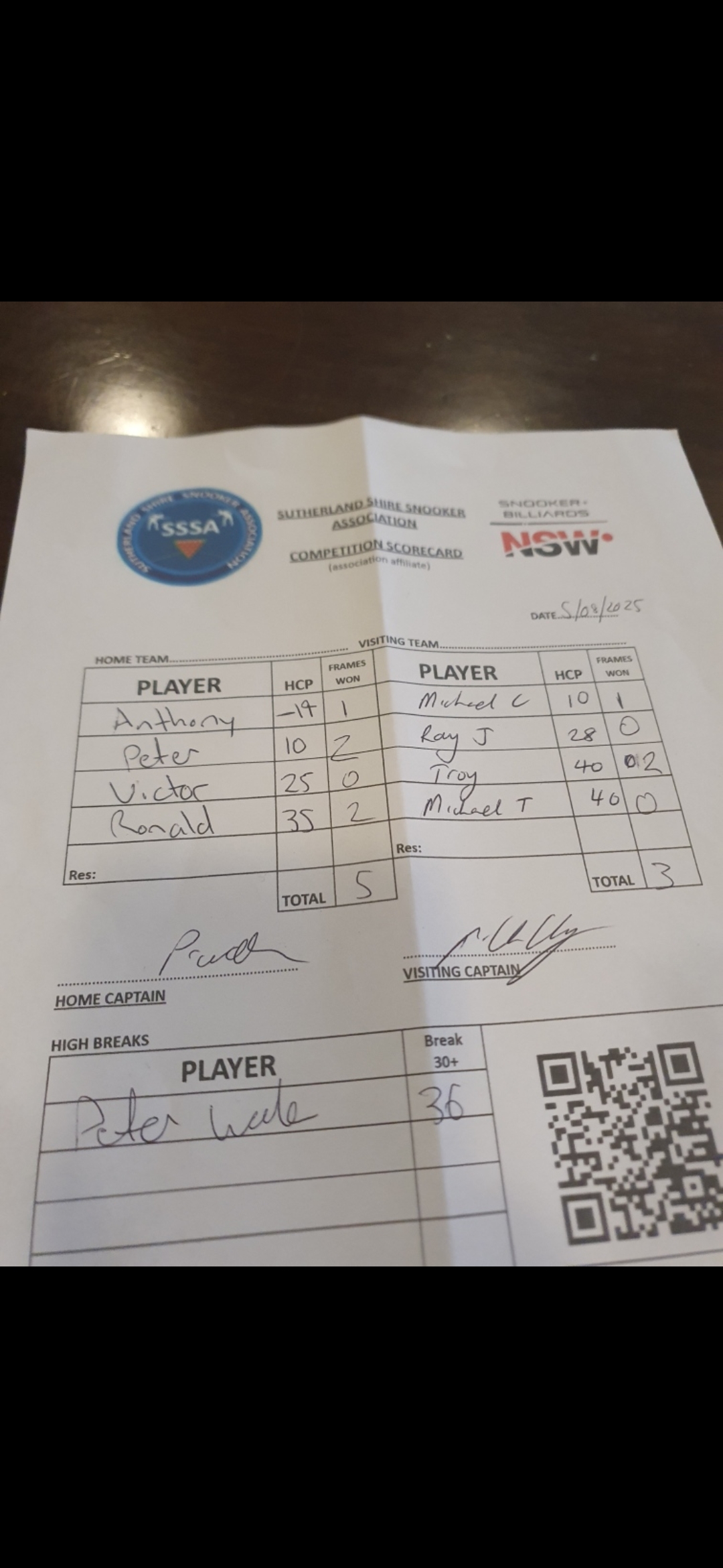| Ronald Chen (33) | Michael Turek (40) | 2025-08-06 09:09:13 | Revesby Workers #2 |