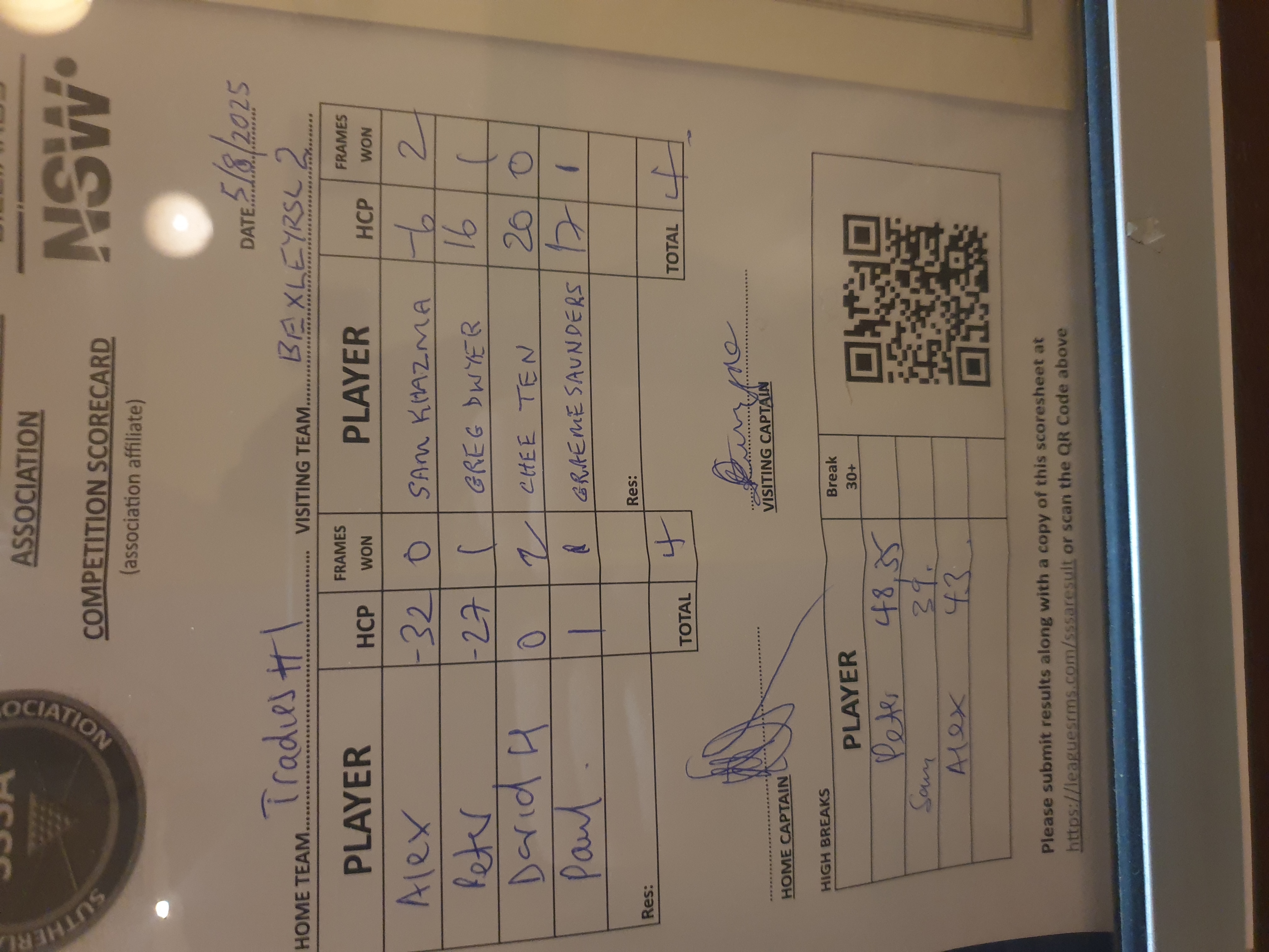 | POS | Tradies #1 | Frame Won | Break | Bexley RSL #2 | Frame Won | Break | Result Note | Updated on | Update by |