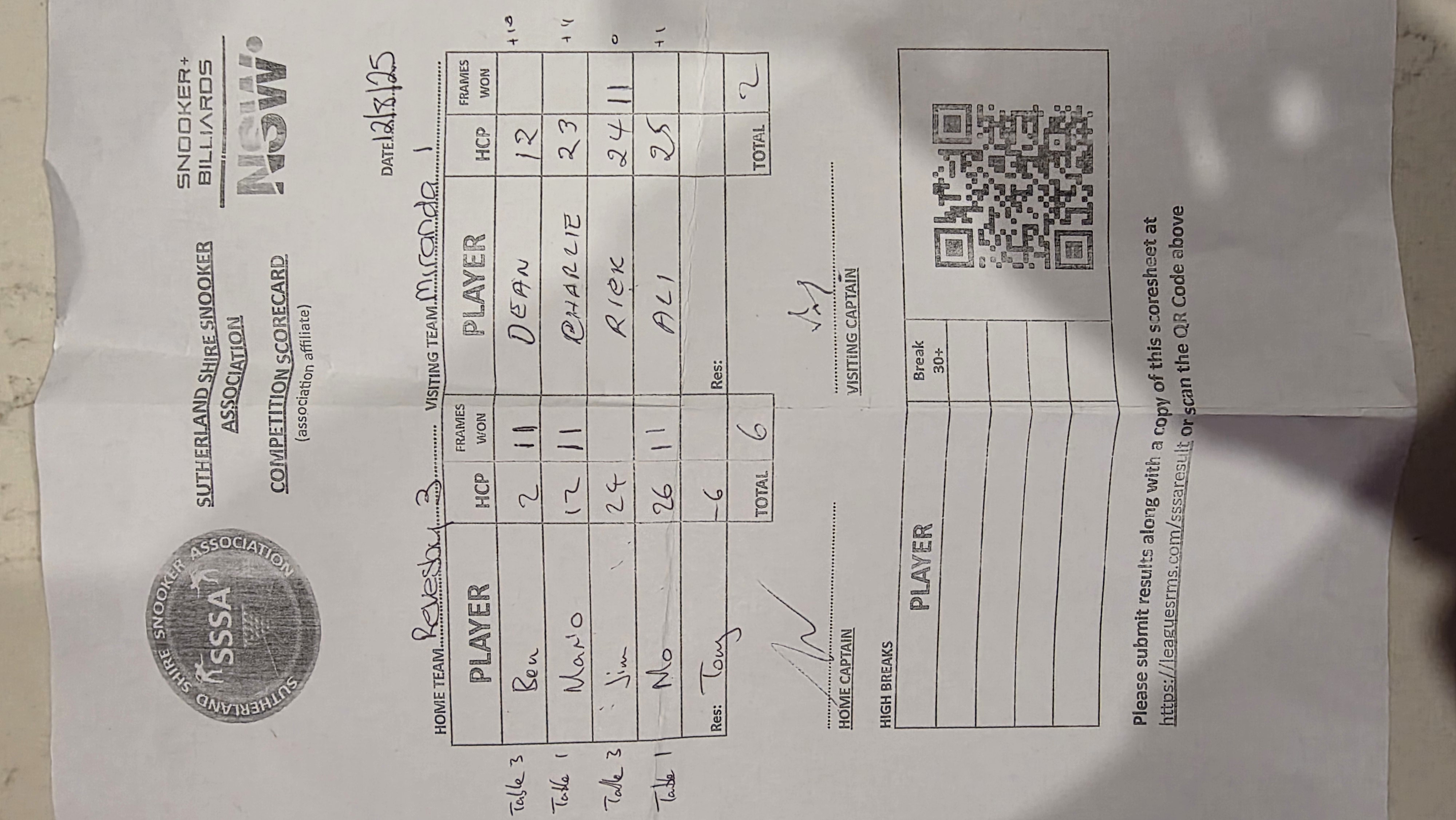 | POS | Revesby Workers #3 | Frame Won | Break | Miranda RSL #1 | Frame Won | Break | Result Note | Updated on | Update by |
