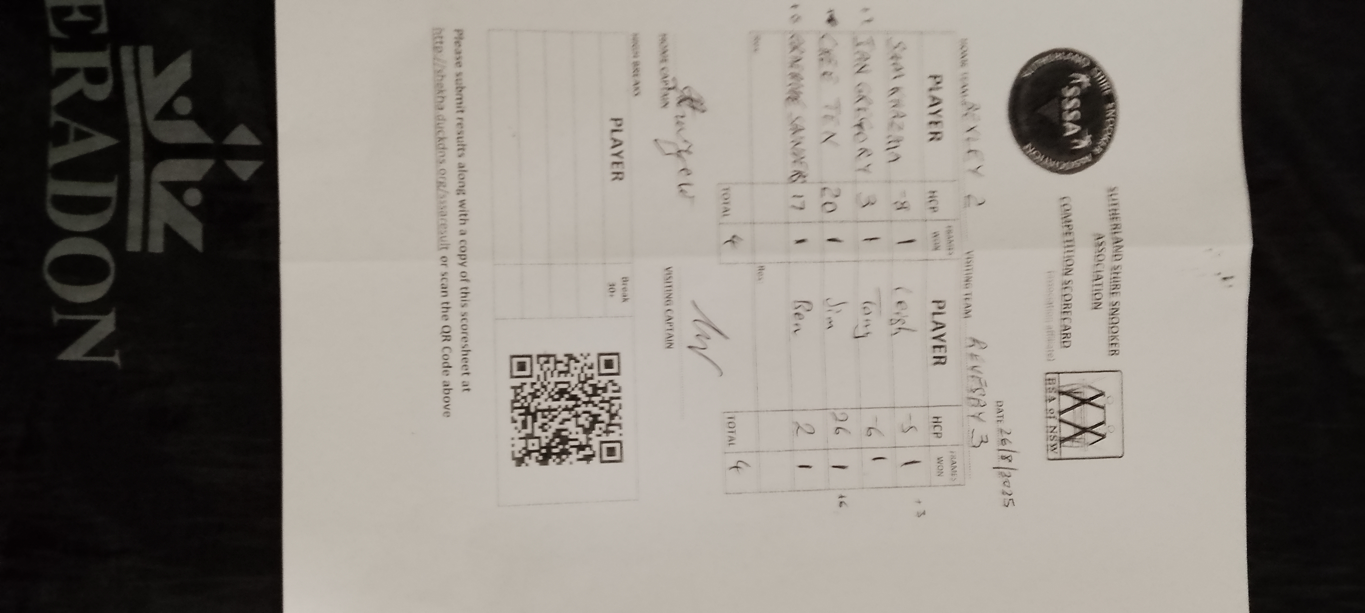 | Chee Ten (20) | Jim Thompson (26) | 2025-08-26 22:36:17 | Bexley RSL #2 | ||||||