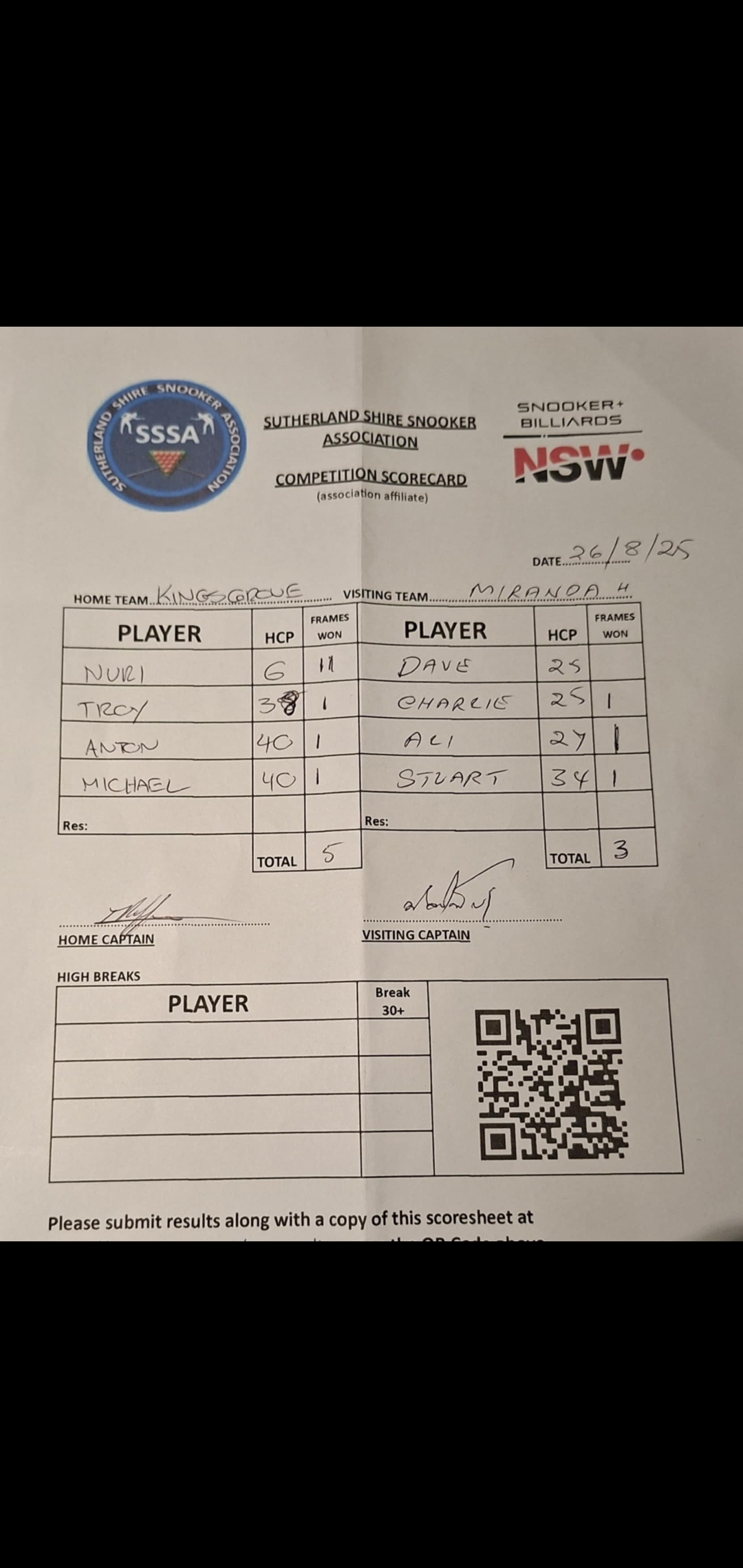 | Nuri Hassim (6) | Dave Mitchell (25) | 2025-08-26 23:12:28 | Miranda RSL #1 | ||||||
