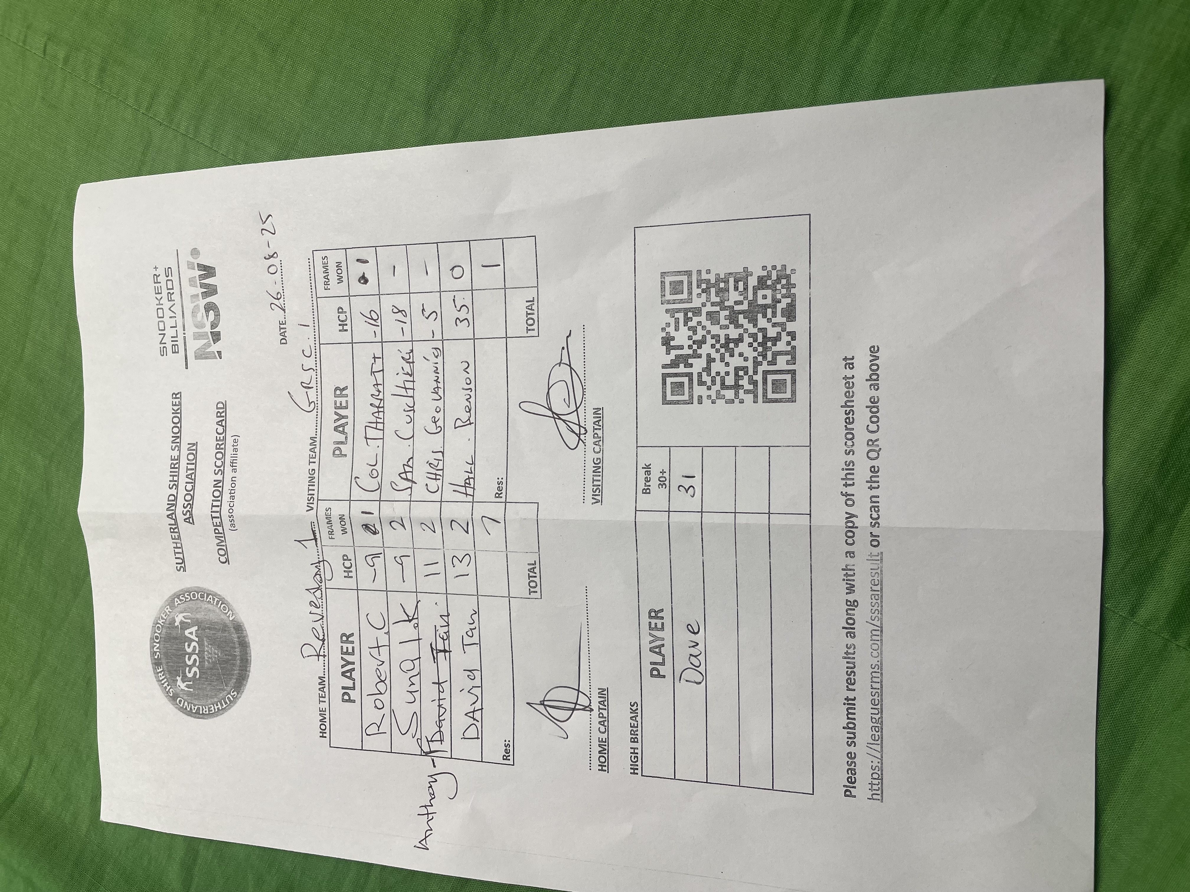 | Antony Foo (11) | Chris Giovannis (-5) | 2025-08-26 21:53:35 | Revesby Workers #1 | ||||||