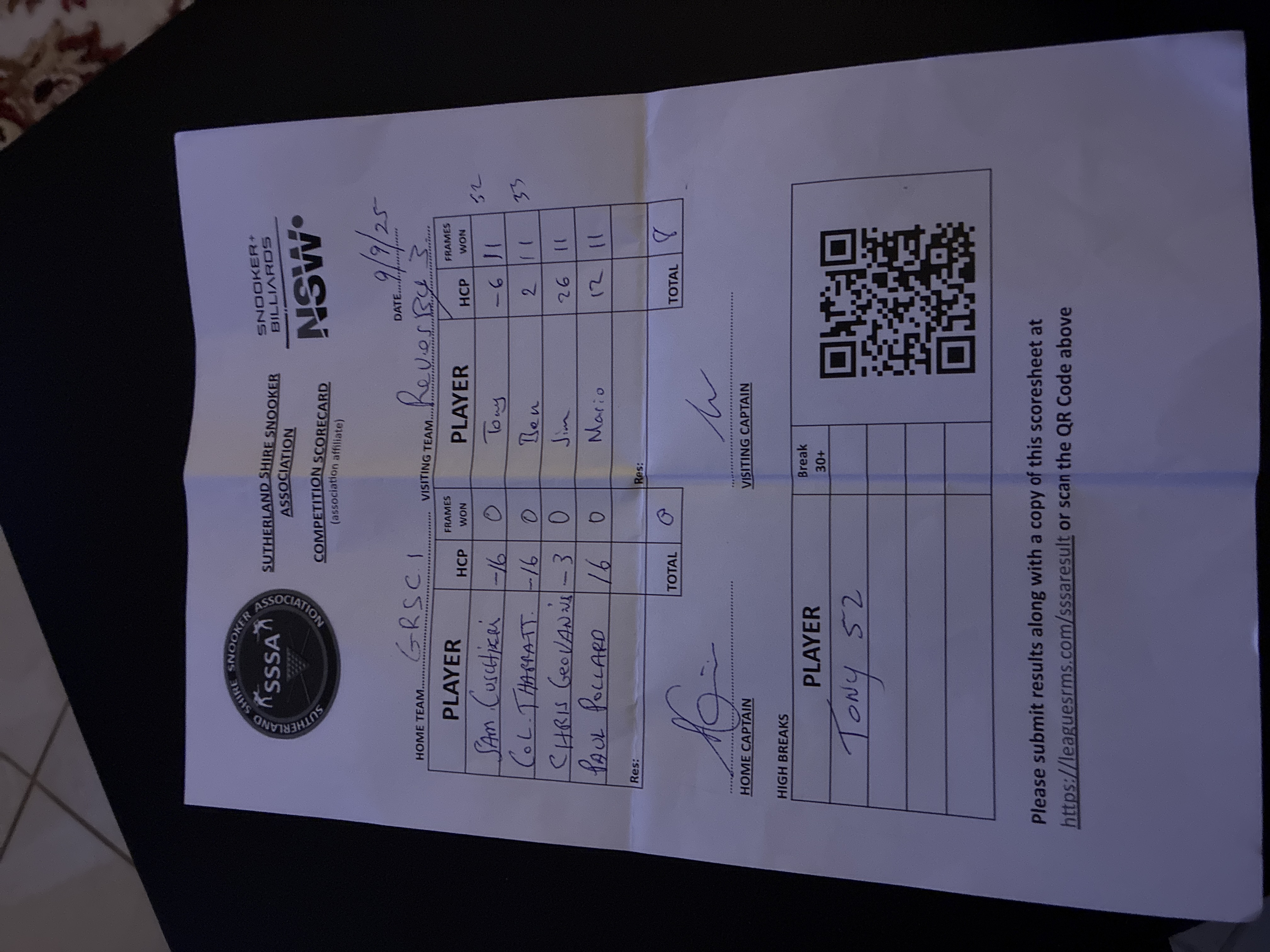 | POS | Georges River #1 | Frame Won | Break | Revesby Workers #3 | Frame Won | Break | Result Note | Updated on | Update by |
