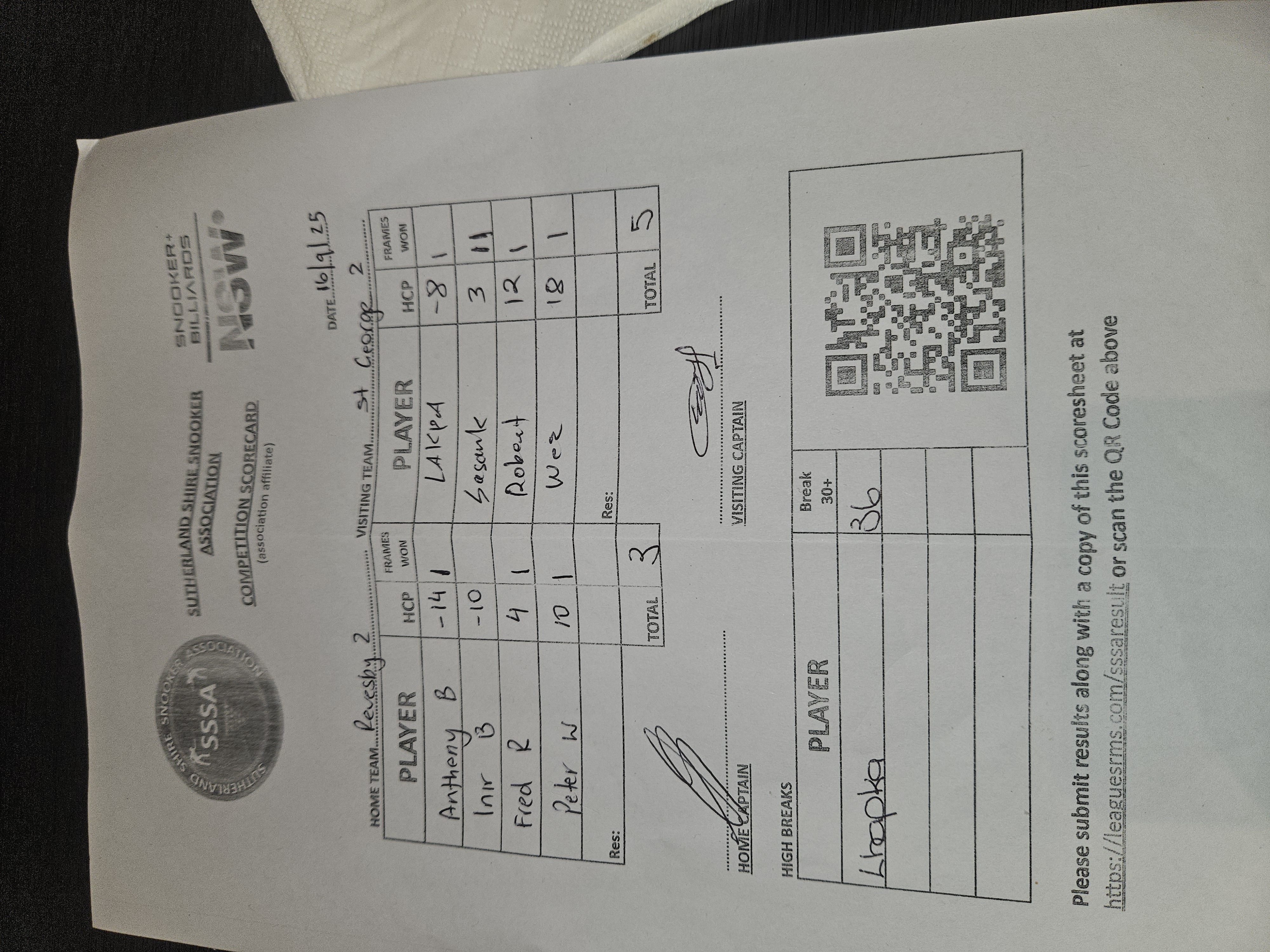 | POS | Revesby Workers #2 | Frame Won | Break | St George #2 | Frame Won | Break | Result Note | Updated on | Update by |