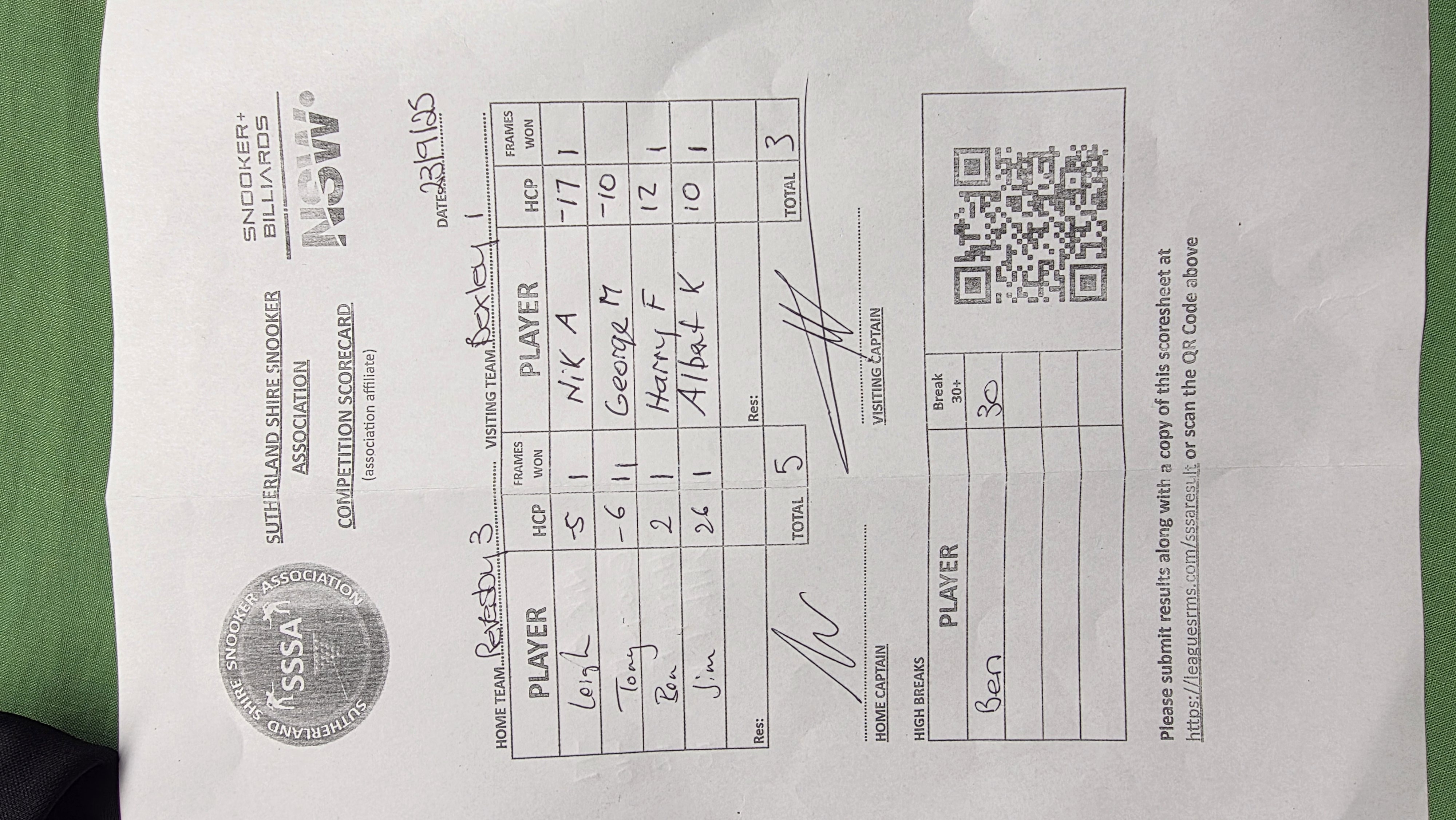 | POS | Revesby Workers #3 | Frame Won | Break | Bexley RSL #1 | Frame Won | Break | Result Note | Updated on | Update by |