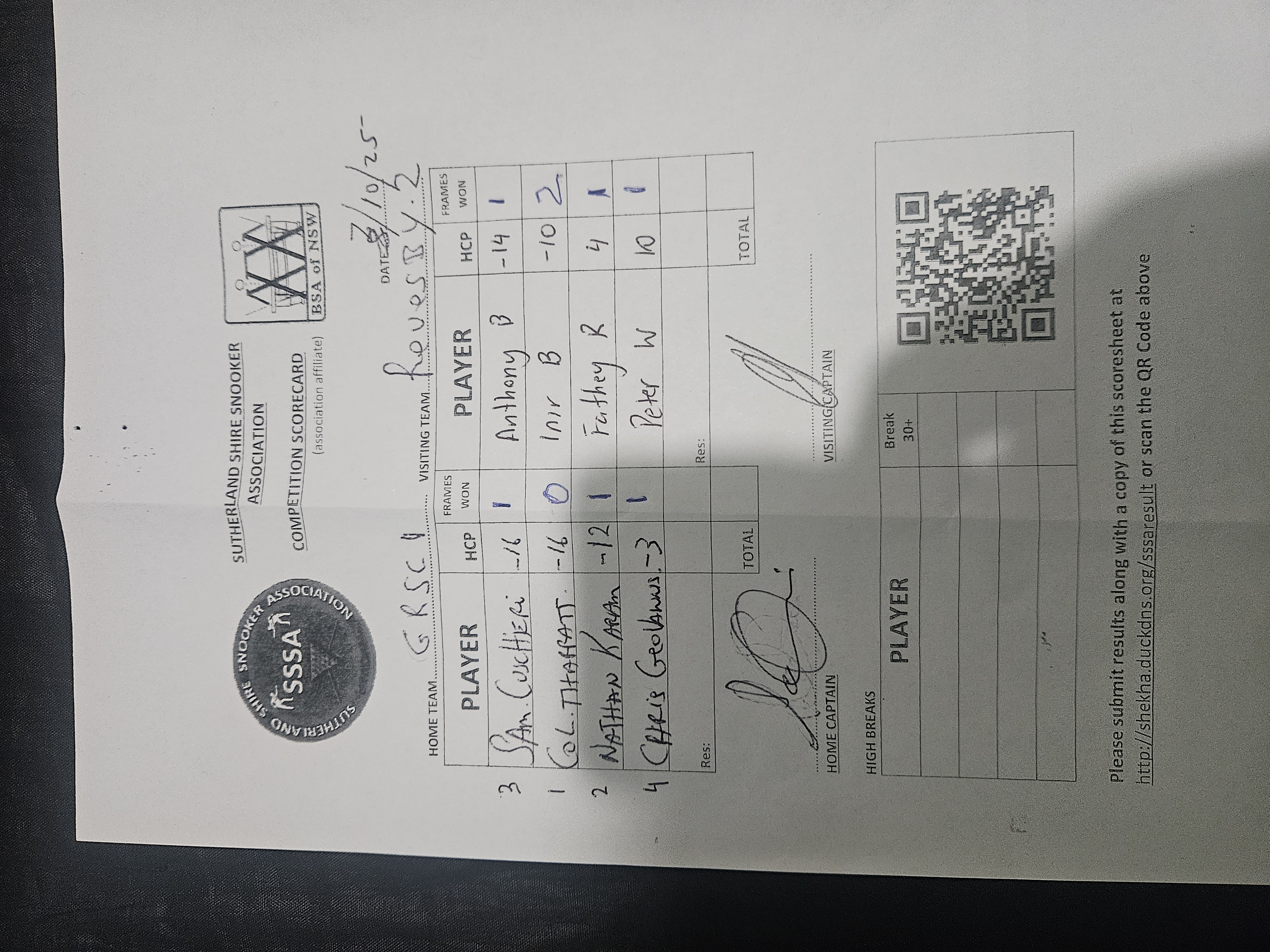 | POS | Georges River #1 | Frame Won | Revesby Workers #2 | Frame Won | Result Note | Updated on | Update by |