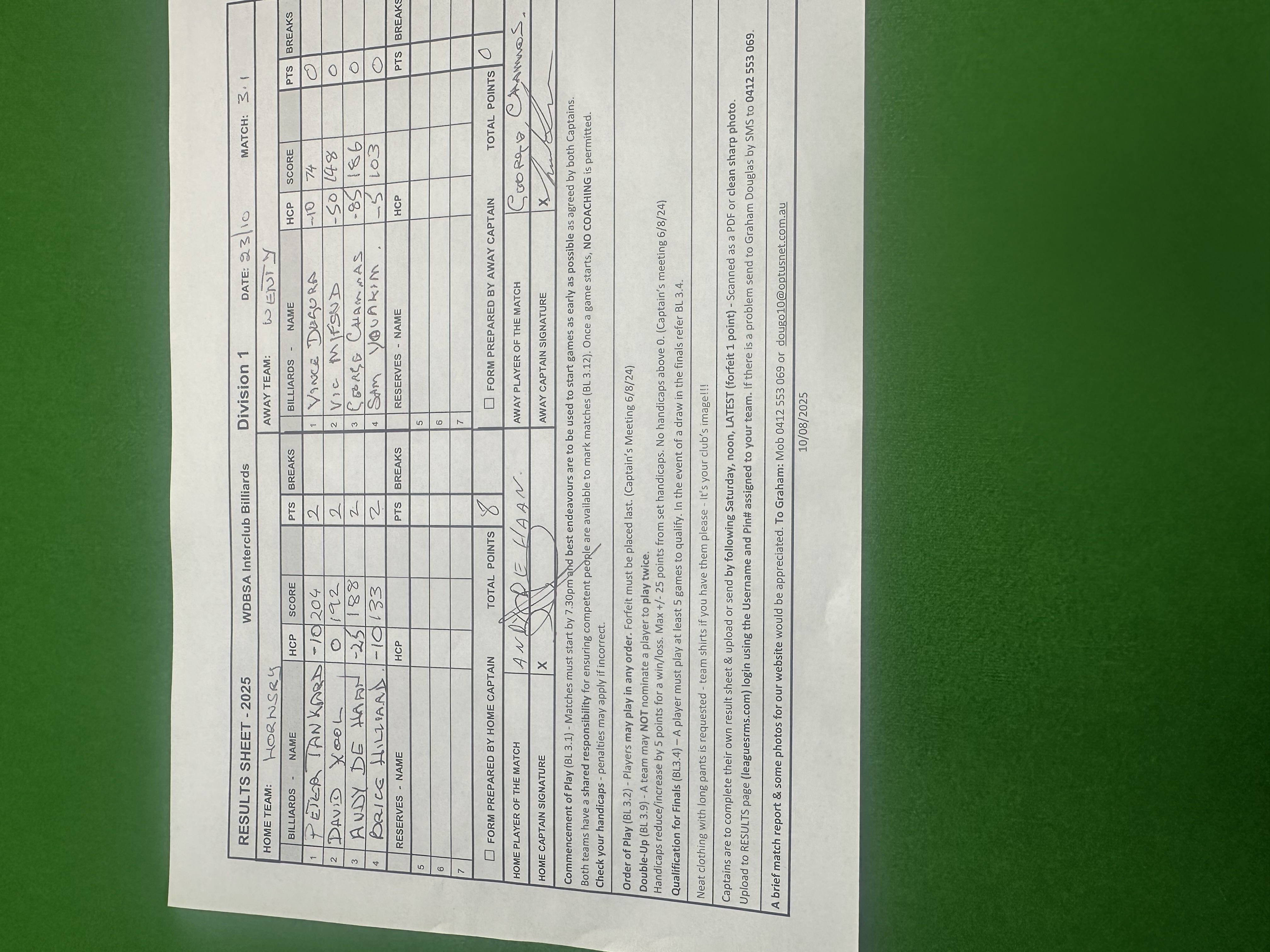 | David Kool (0) | Vic Mifsud (-50) | 2025-10-24 09:49:31 | Div1-Hornsby | ||||||||||