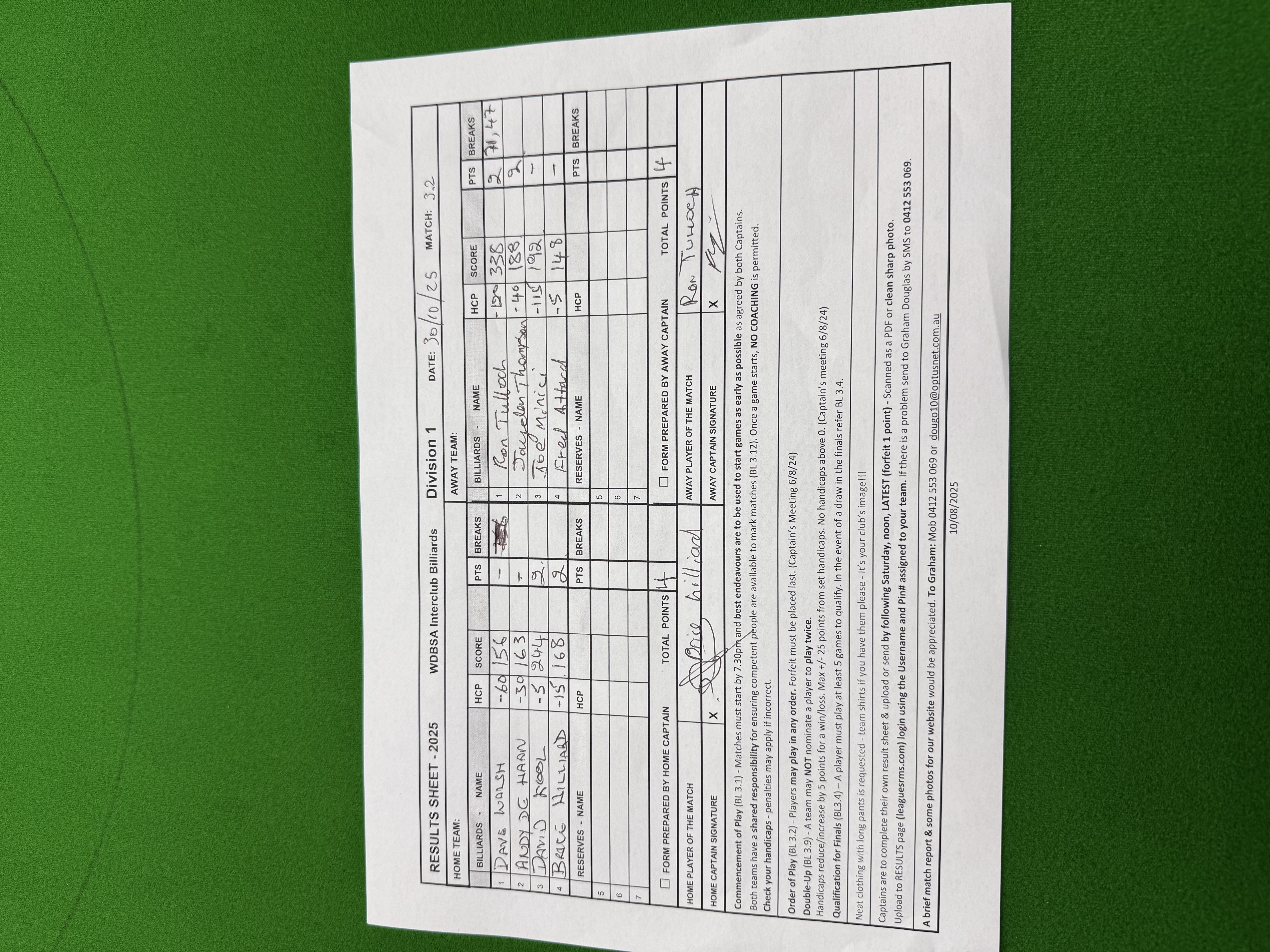 | Brice Hilliard (-15) | Fred Attard (-5) | 2025-10-31 08:52:03 | Div1-Hornsby |