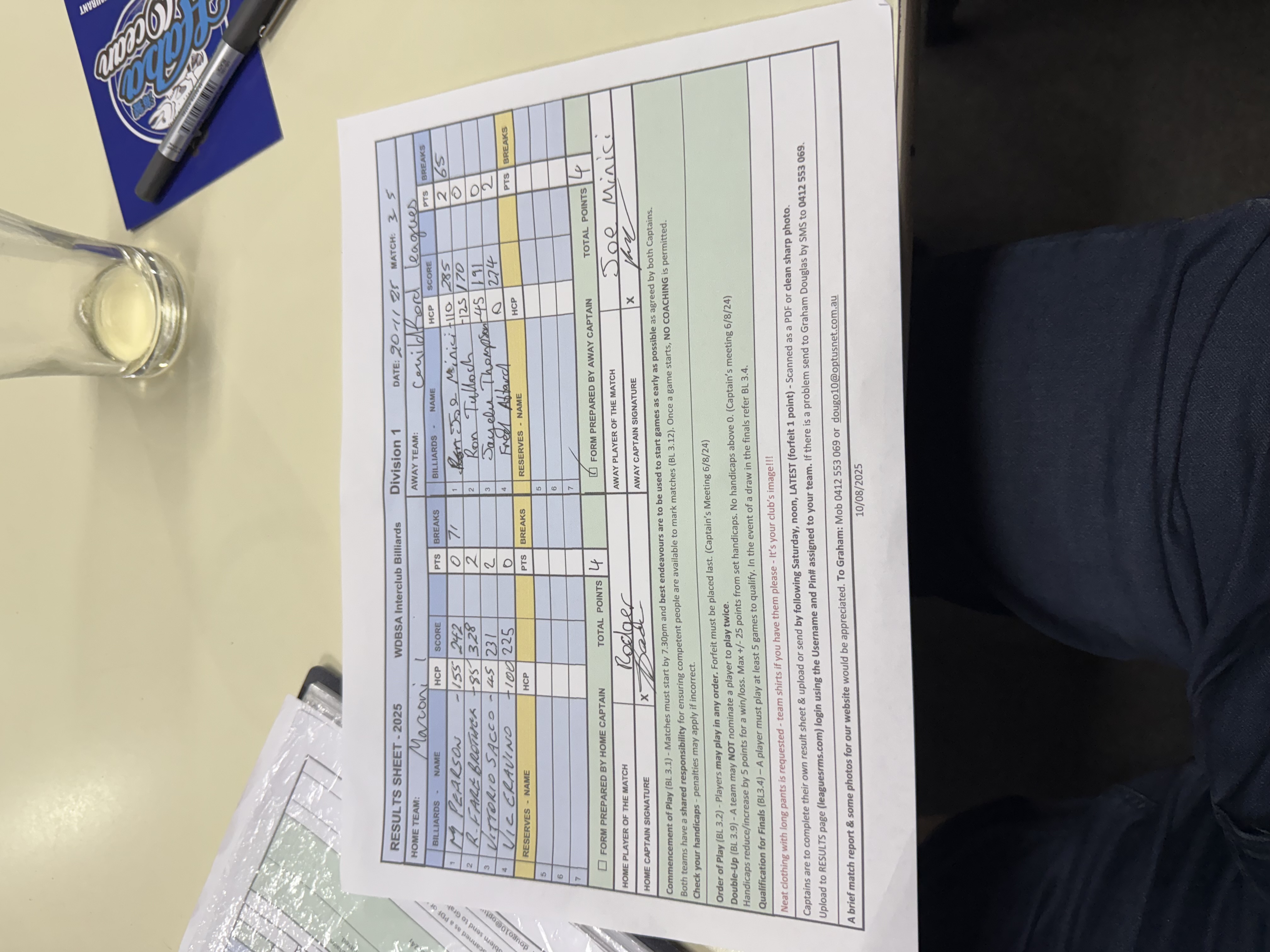 | POS | Marconi #1 | Score | Net | PTS | Break | Guildford | Score | Net | PTS | Breaks | Result Note | Updated on | Update by |
