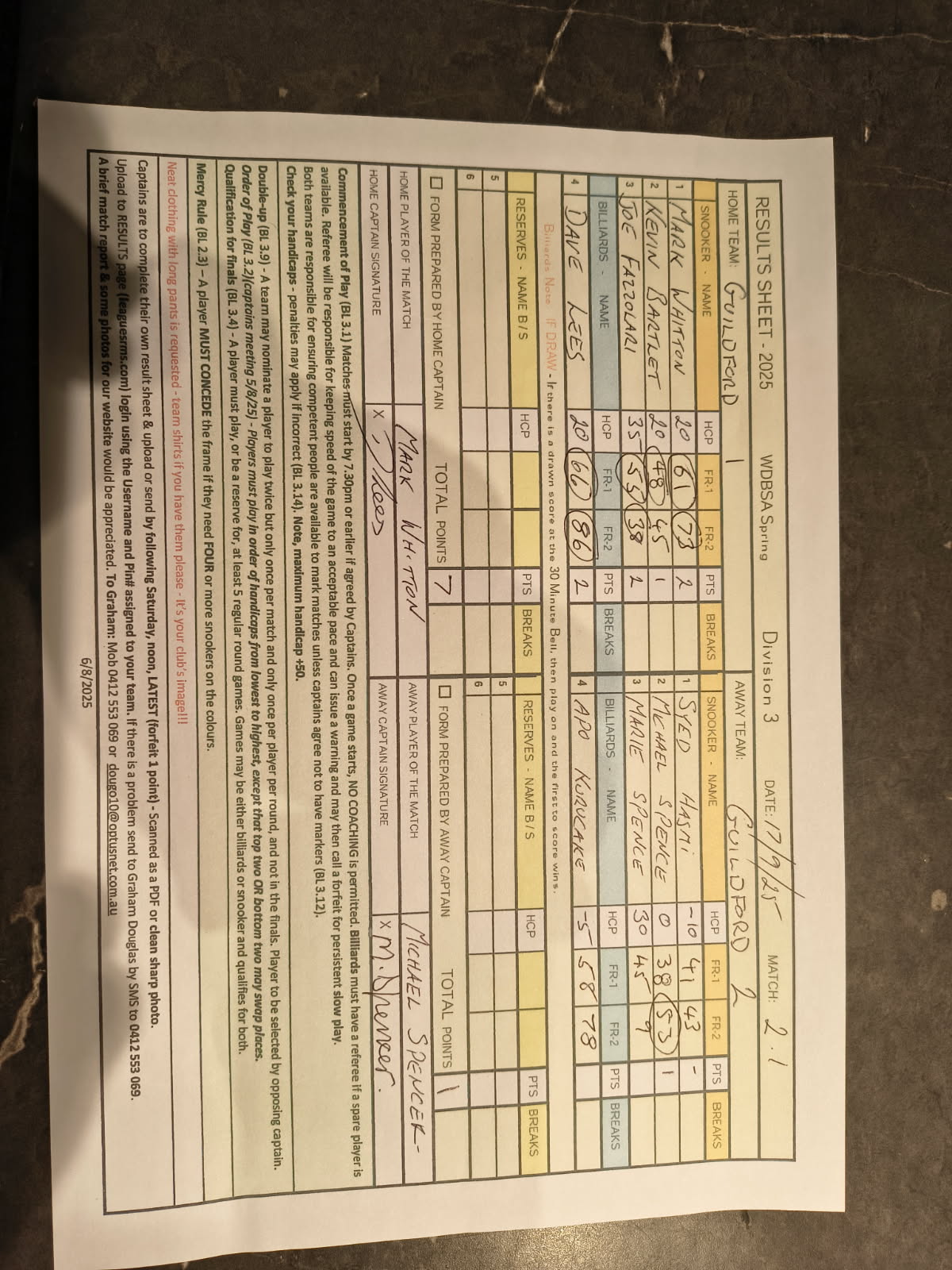 | Joe Fazzolari (35) | Marie Spencer (30) | 2025-09-18 12:44:46 | Div3-Guildford #2 |