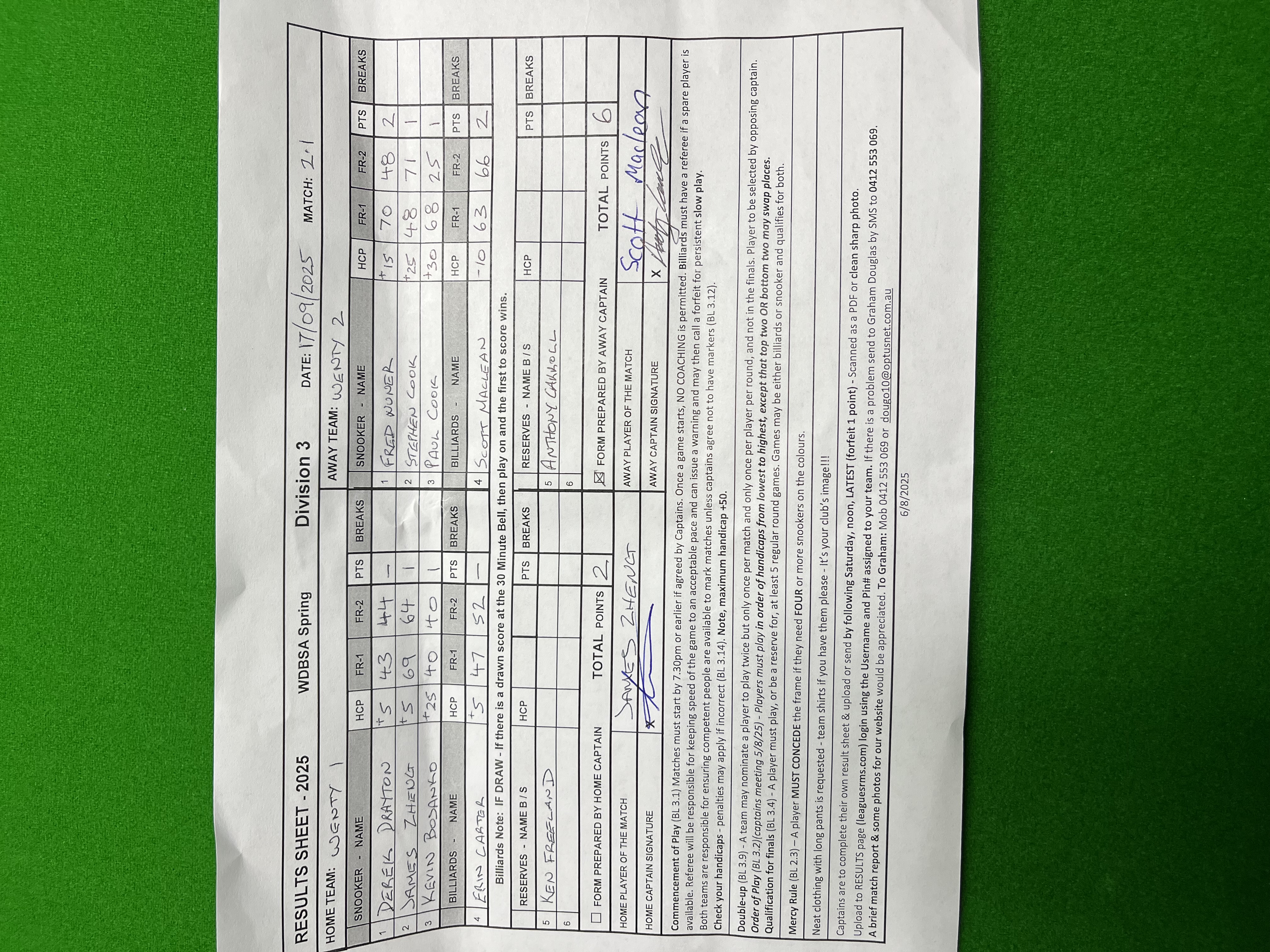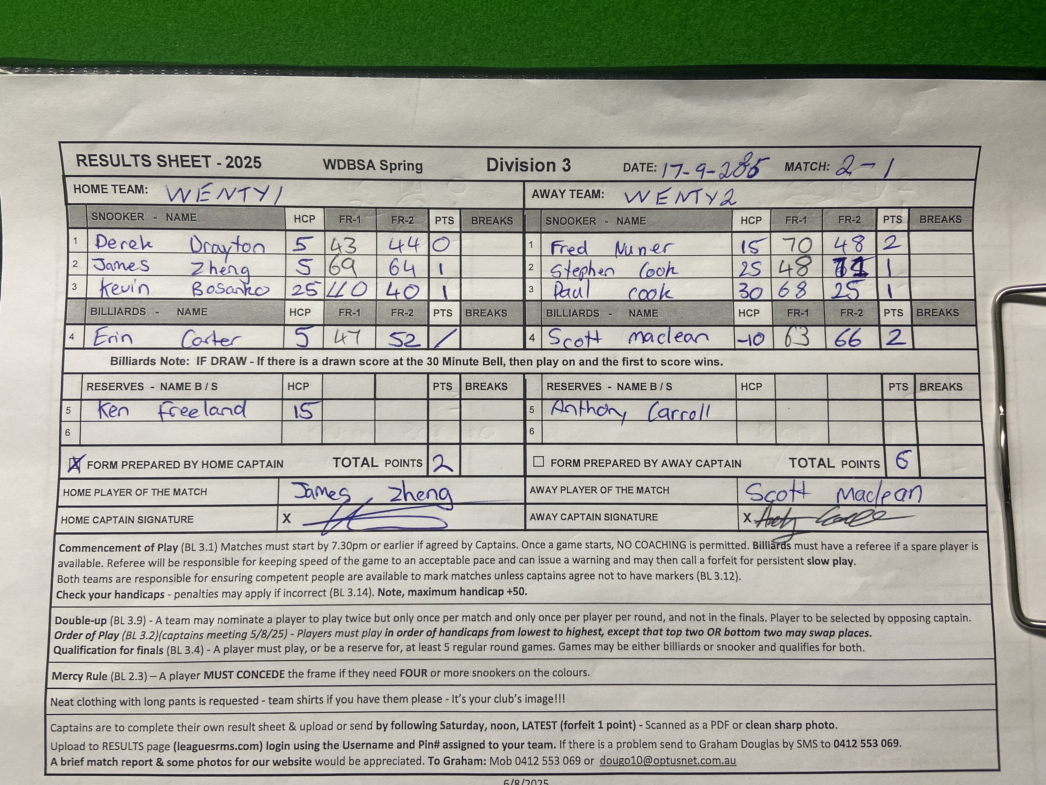 | Kevin Bosanko (25) | Paul Cook (30) | 2025-09-18 22:08:27 | Div3-Wenty 2 |