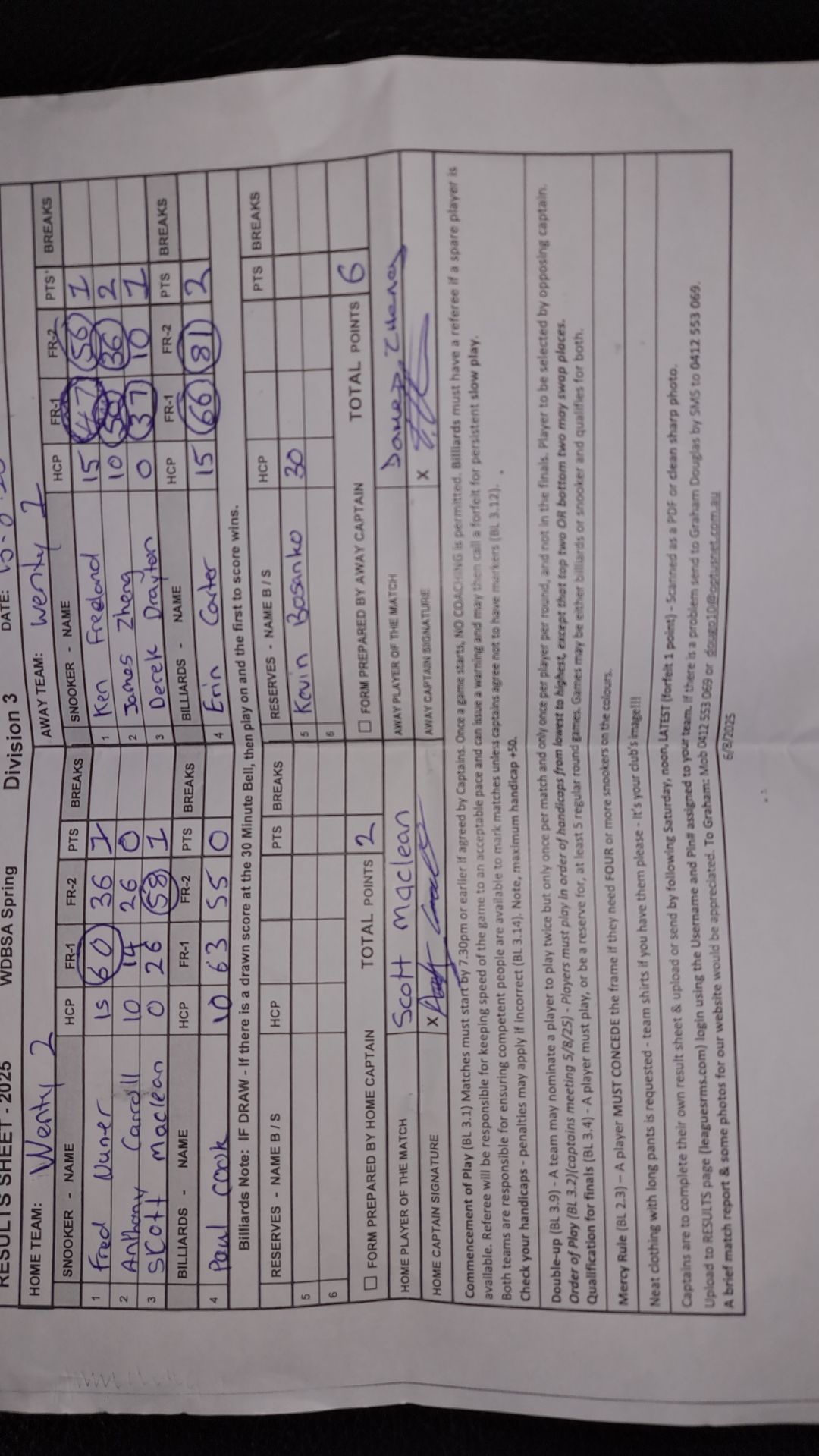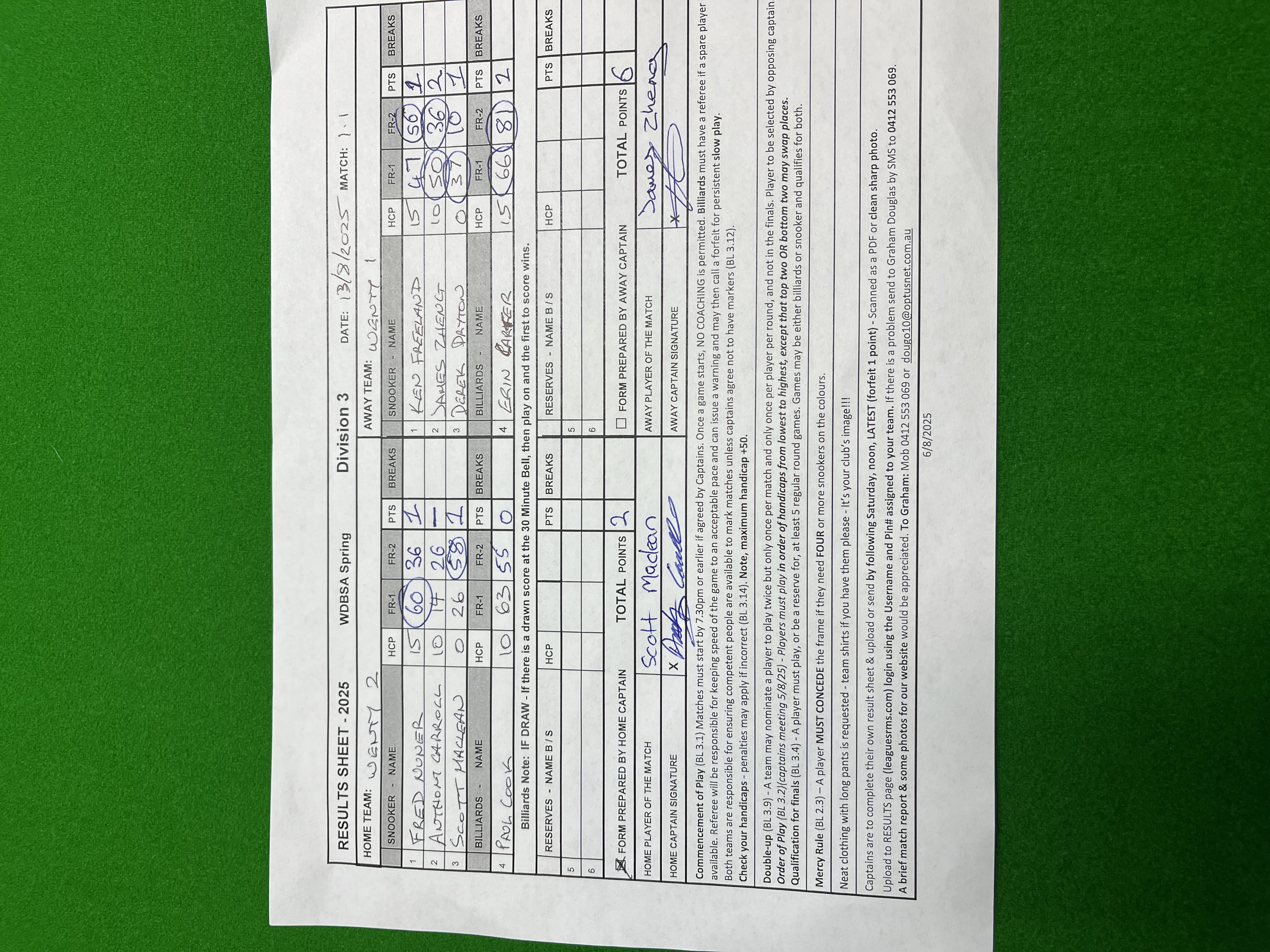 | POS | Wenty #2 | Frame 1 | Net | Frame 2 | Net | PTS | Breaks | Wenty #1 | Frame 1 | Net | Frame 2 | Net | PTS | Breaks | Result Note | Updated on | Update by |