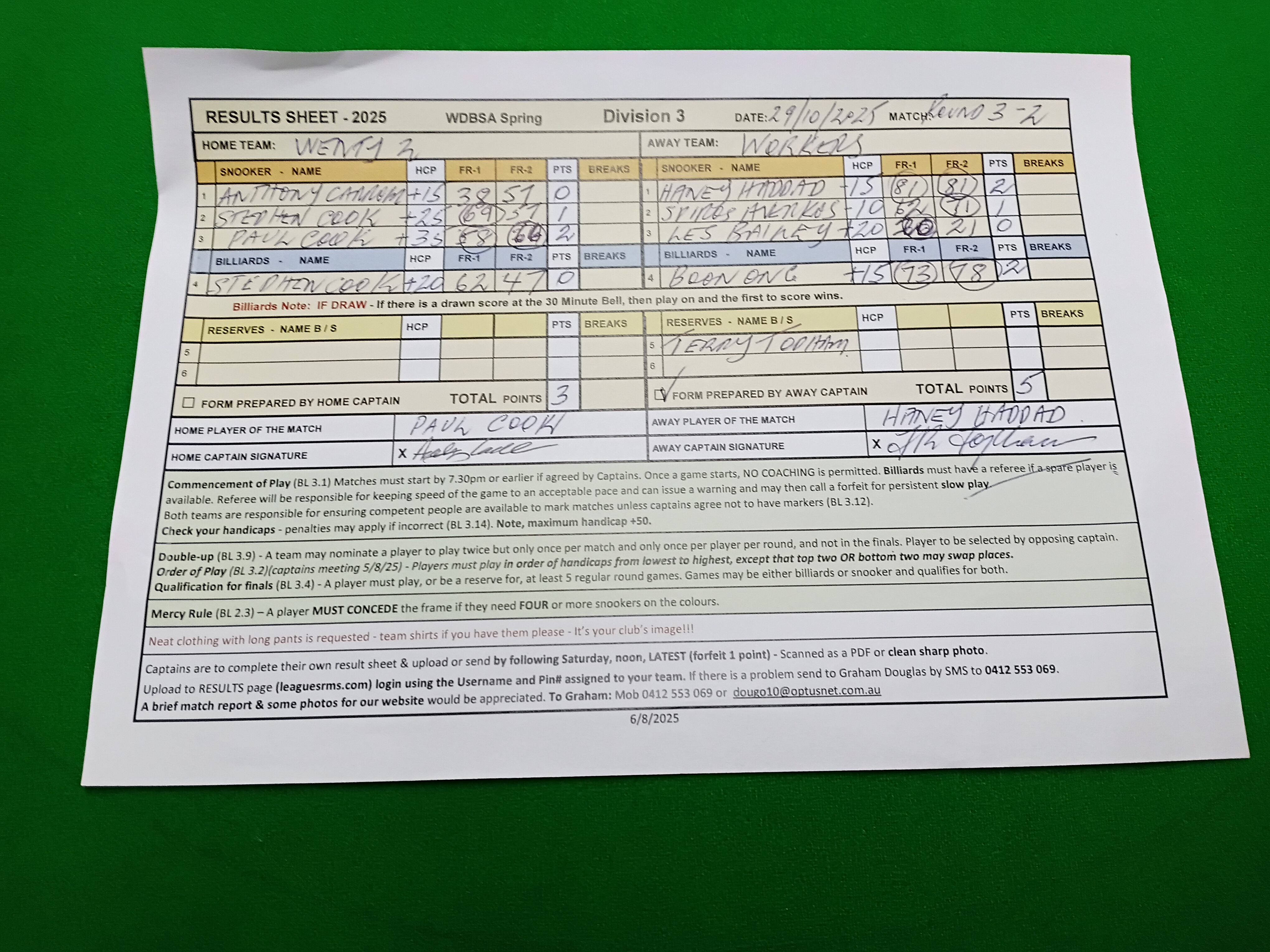 | Stephen Cook (20) | Boon Ong (15) | 2025-10-29 22:36:37 | Div3-Wenty 2 |